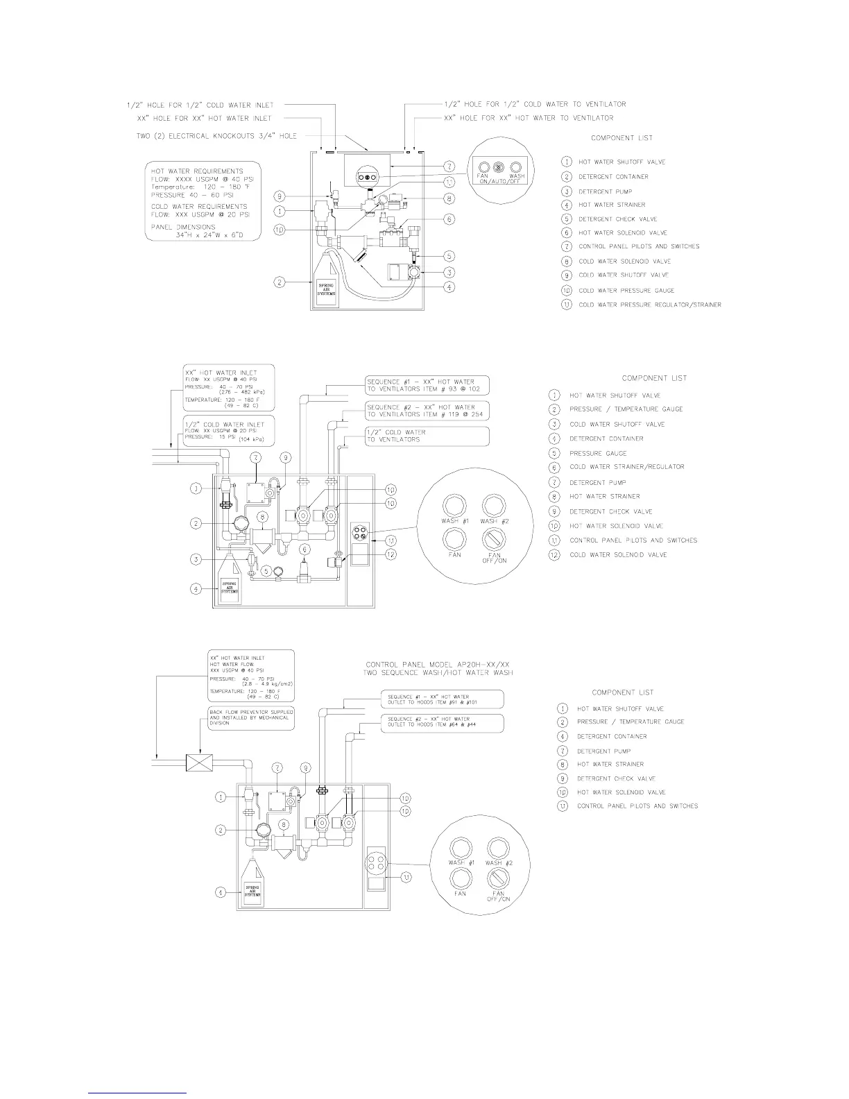 Spring Air Systems HT-B - SBA10 C One Sequence Wash Plumbing Schematic; MP20 C Two Sequence Wash Electrical Schematic; MP20 H Two Sequence Wash Electrical Schematic