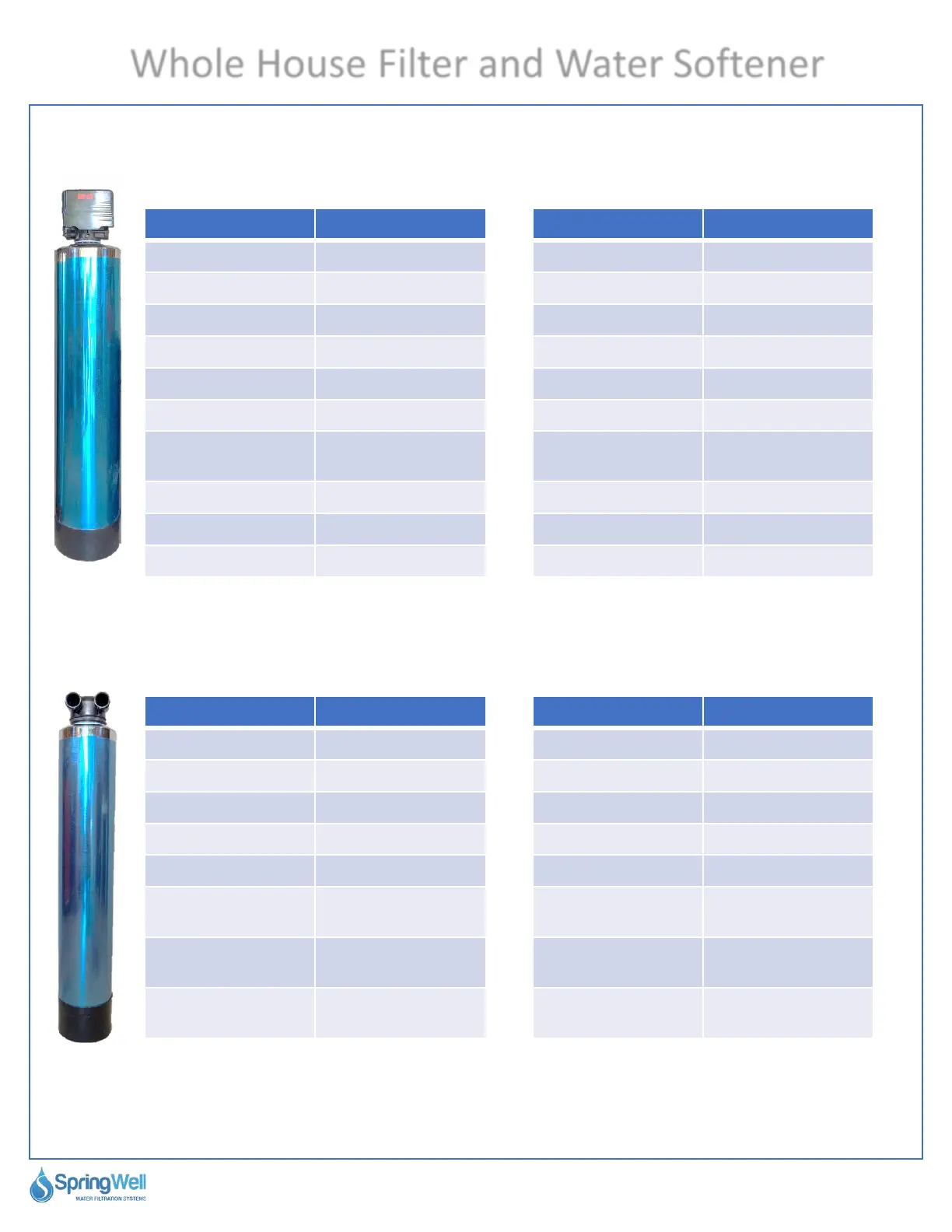 Spring Well CSS1 - Whole House System Specifications; Model Specifications Overview
