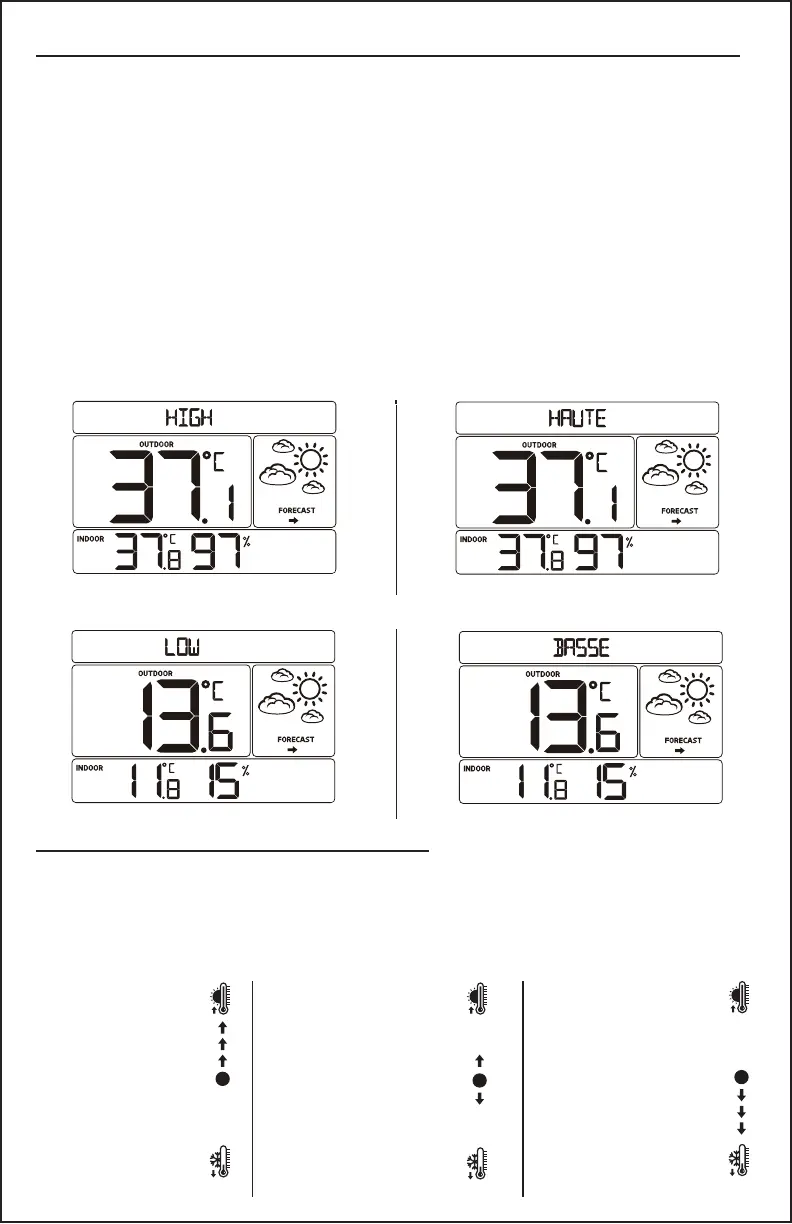 4. Hold the LOW/- button to reset minimum temperature and