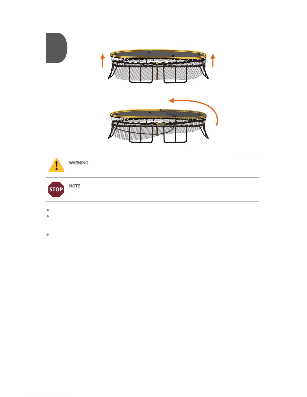 WARNING - Do not use the trampoline until it is completely assembled. Failure to follow these