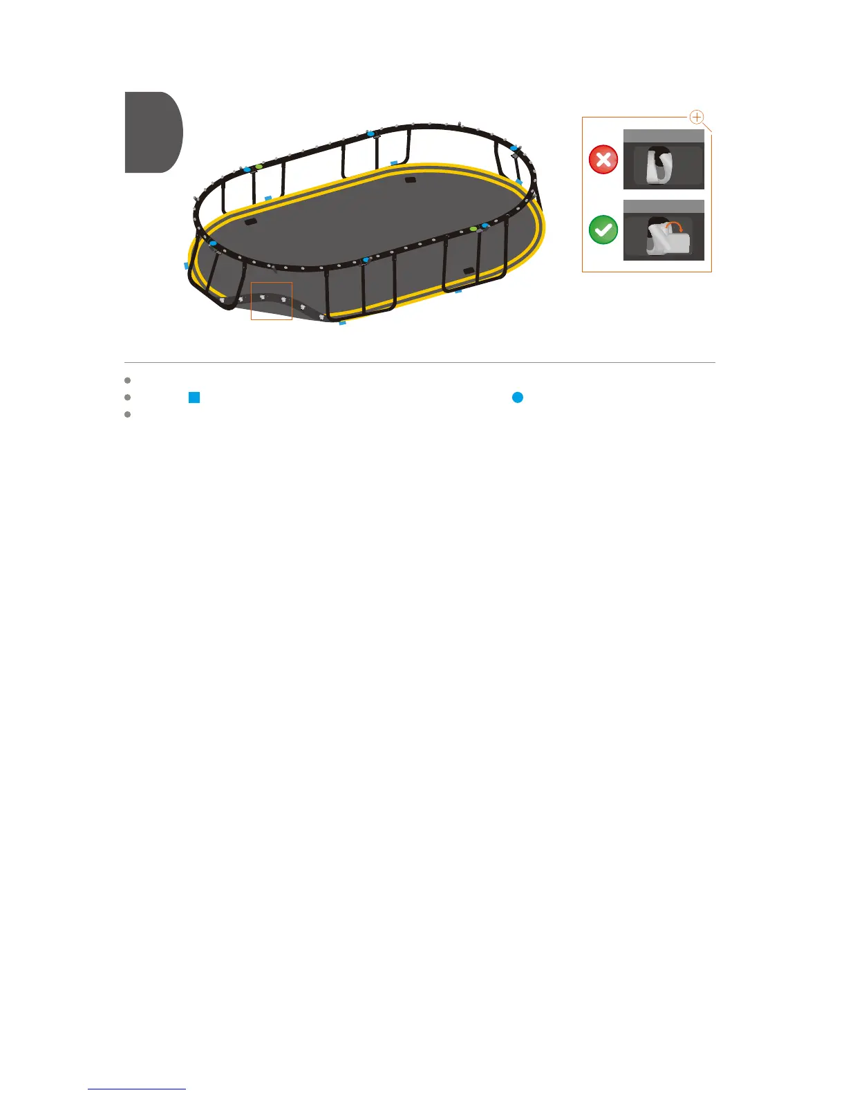 Lay out the mat with the yellow stripes facing upwards inside the trampoline frame.