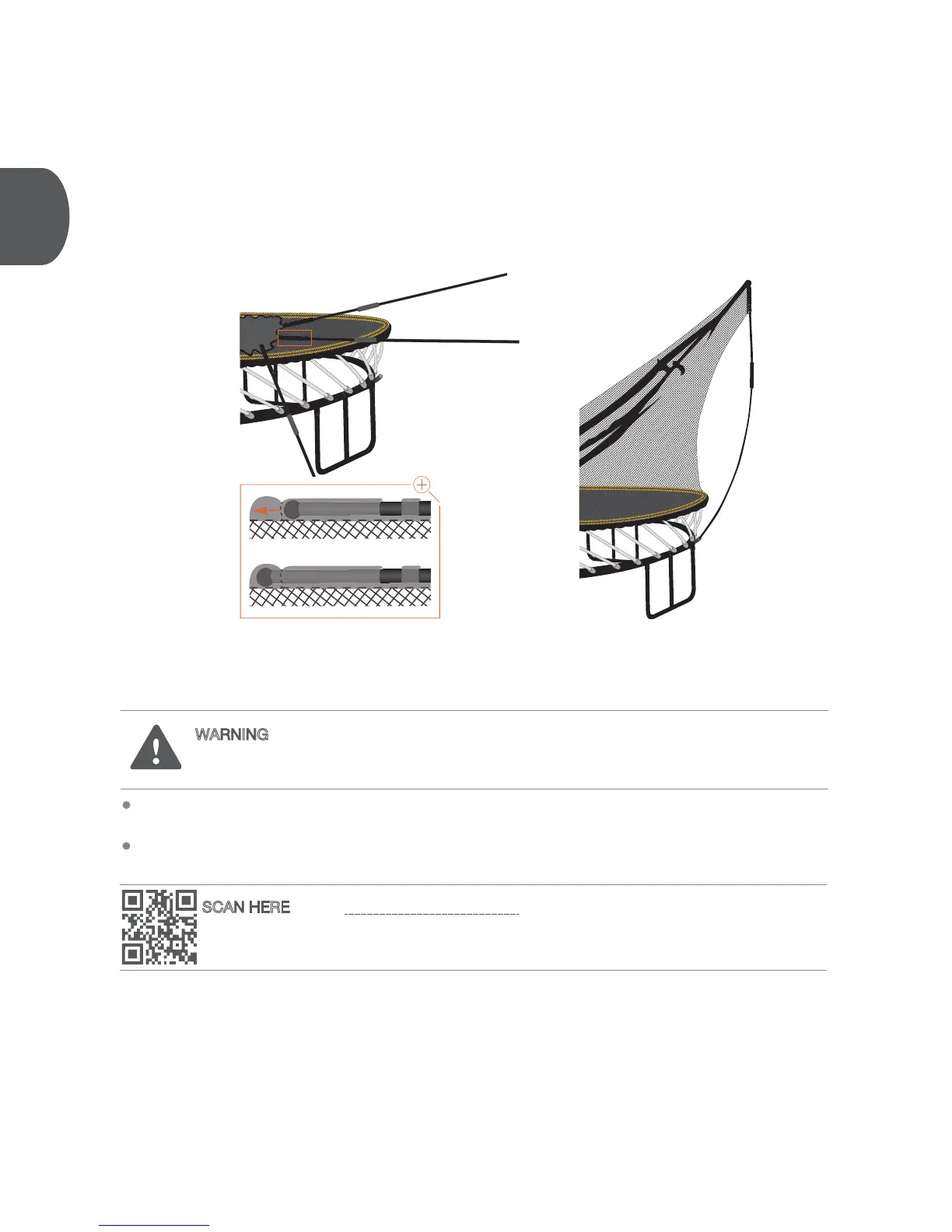 Insert the bottom end of the black net rod into the net rod socket on the trampoline frame. You will
