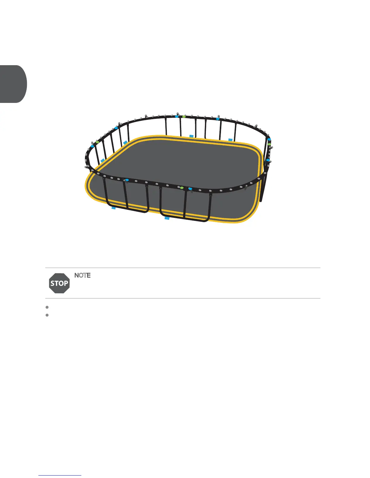 Lay out the mat with the yellow stripes facing upwards inside the trampoline frame.