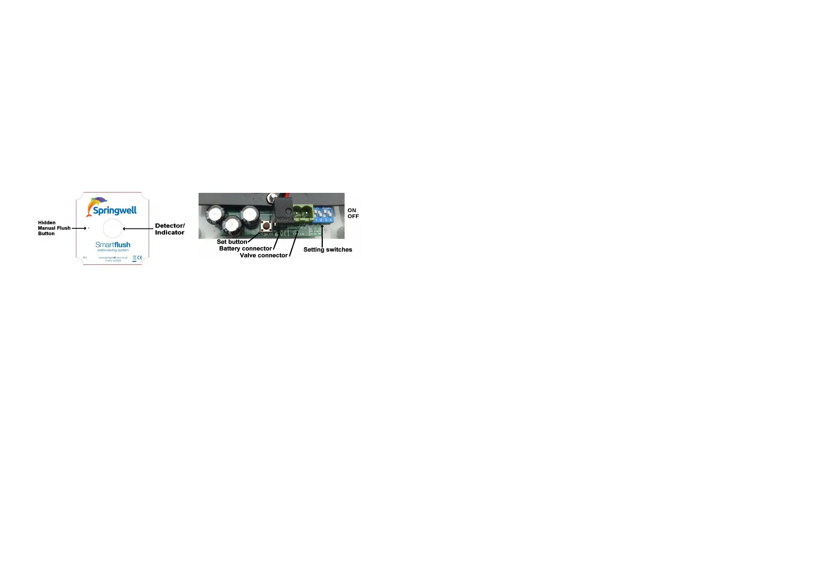 7) Empty the cistern ready to set the fill time : Hold the SET button, tap Manual Flush to start filling,
