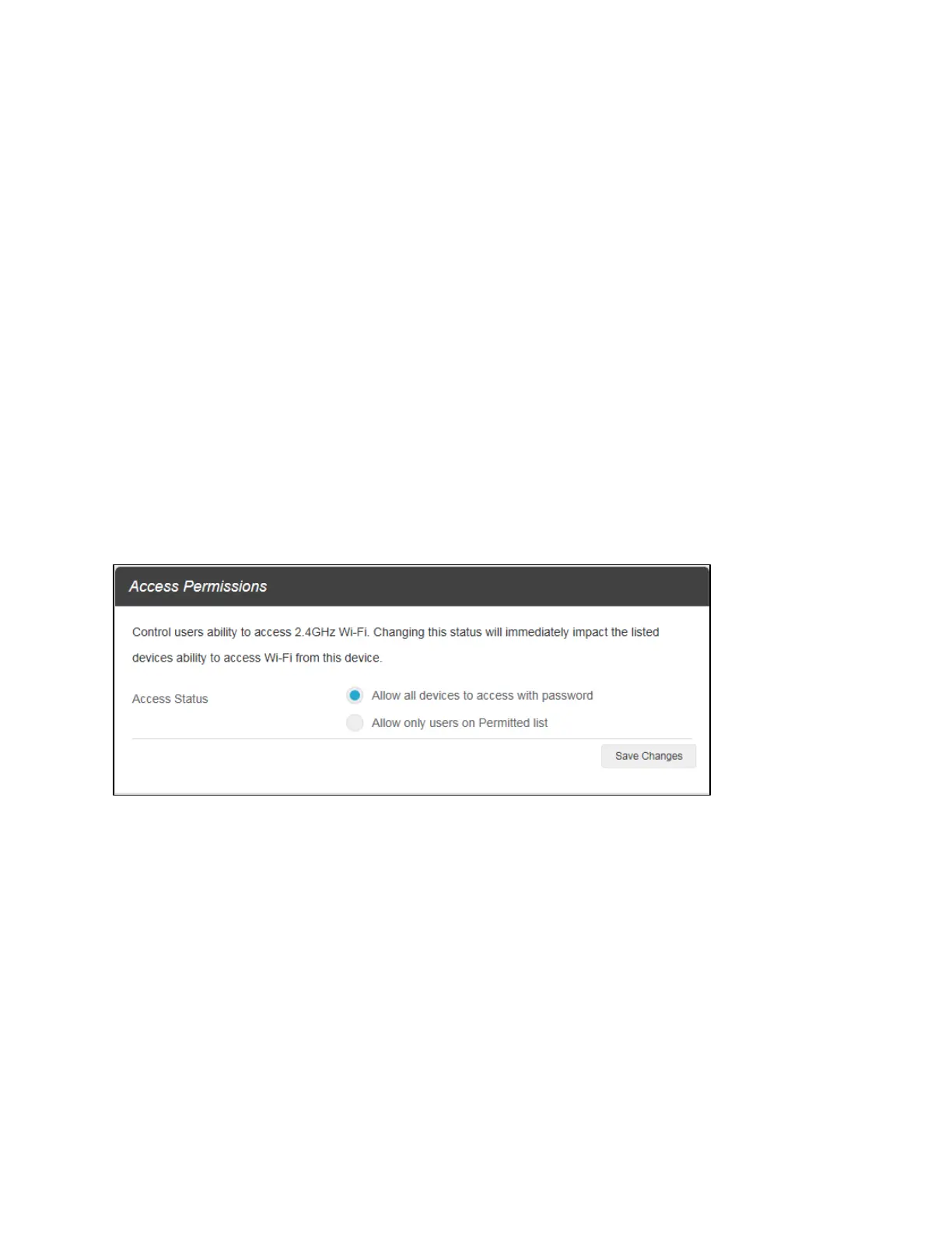on Permitted list" is selected, only users that have been granted access by adding a user’s MAC