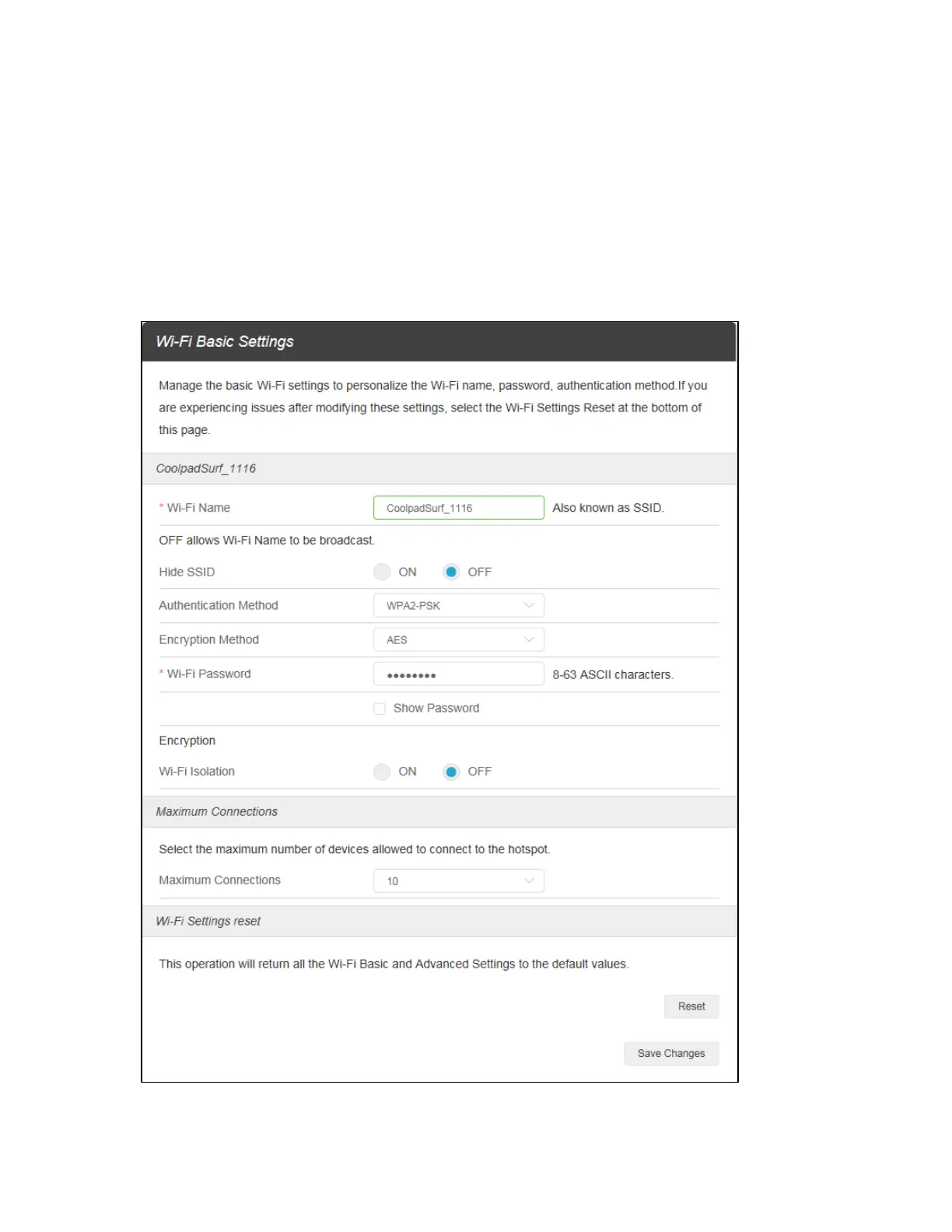 Basic: Manage the basic Wi-Fi settings to personalize the Wi-Fi name, password, authentication