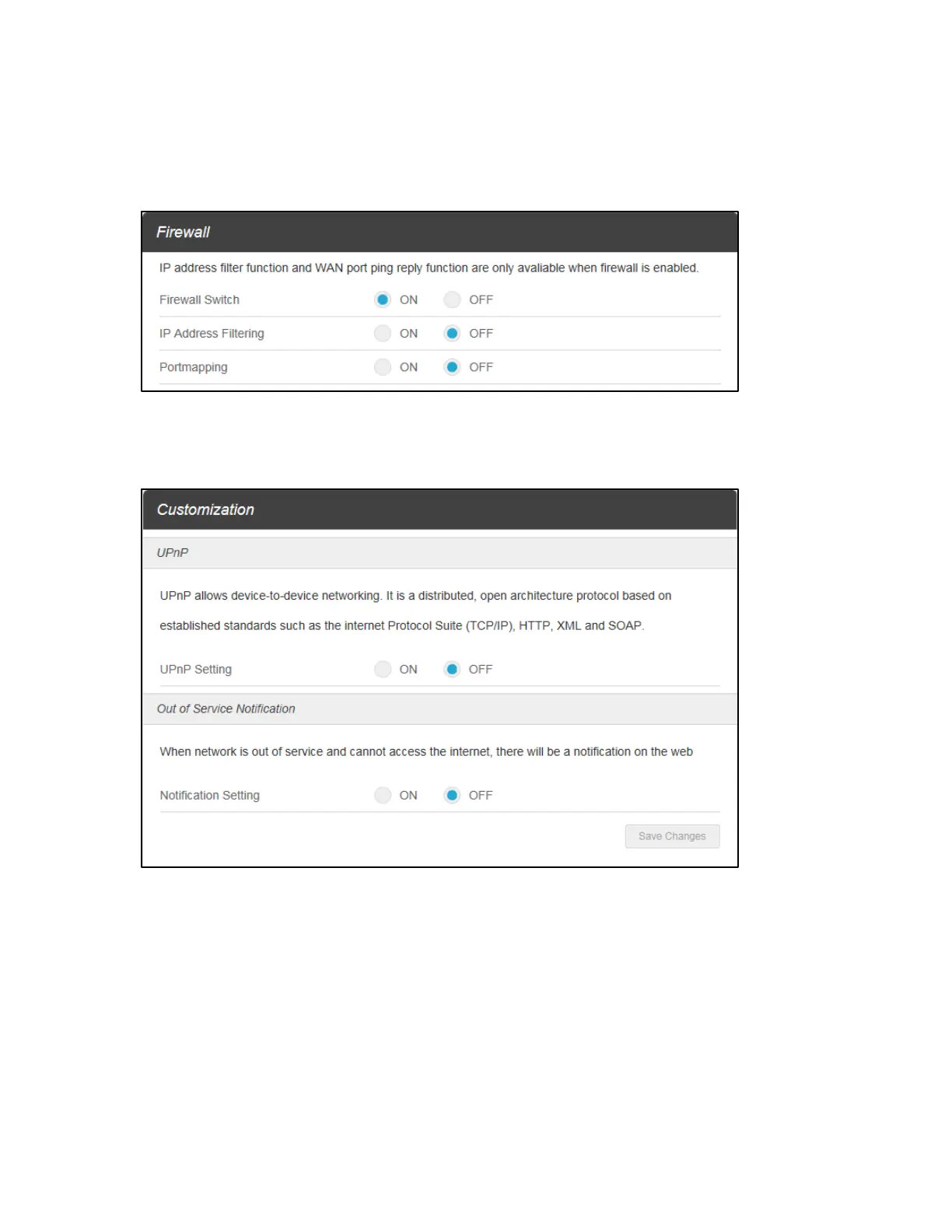 Customization: Enable UPnP to allow device-to-device networking. Enable Out of Service
