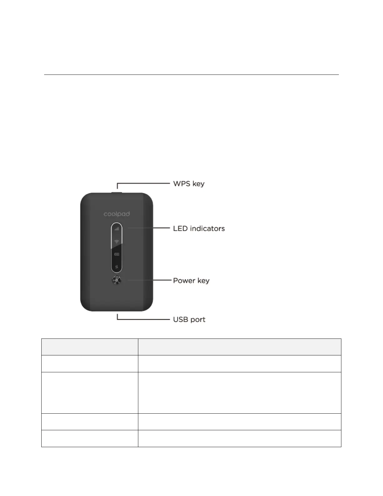 The following illustration outlines your mobile hotspot’s primary external features and keys.