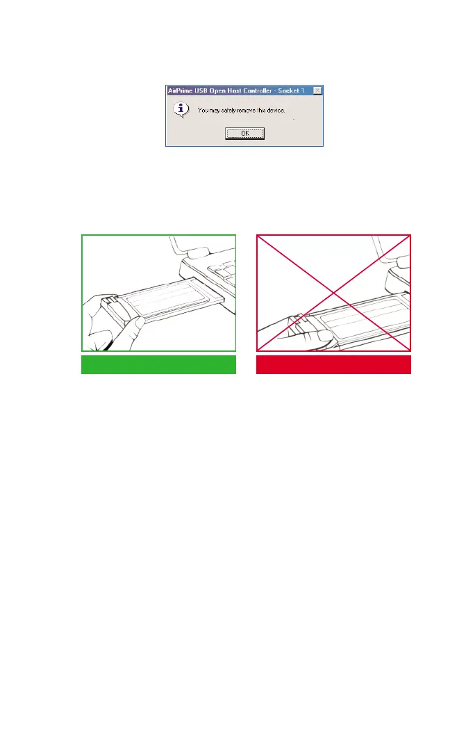 6. ClickOK, then remove the PCS Connection Card. It is now safe to eject the card.