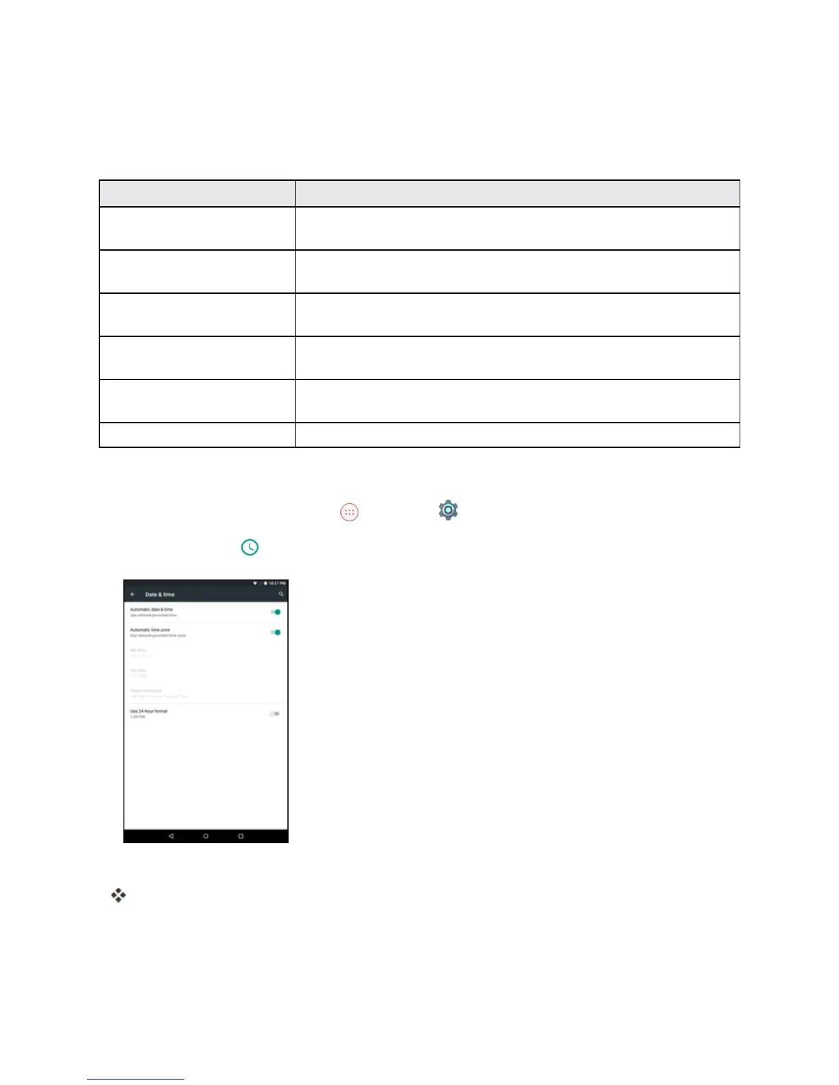 Automatic date & time Enableordisablethesystemtosetthedateandtimeautomatically