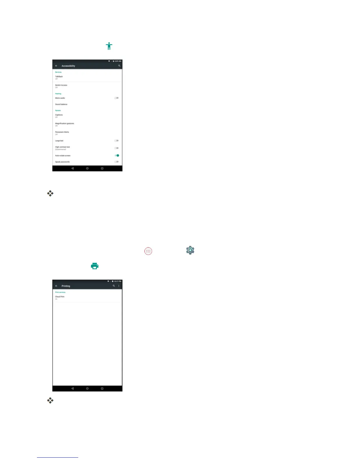 Theprintingmenuletsyouprintanyfilewirelesslyfromyourtablettoanoptionalcompatibleprinter.