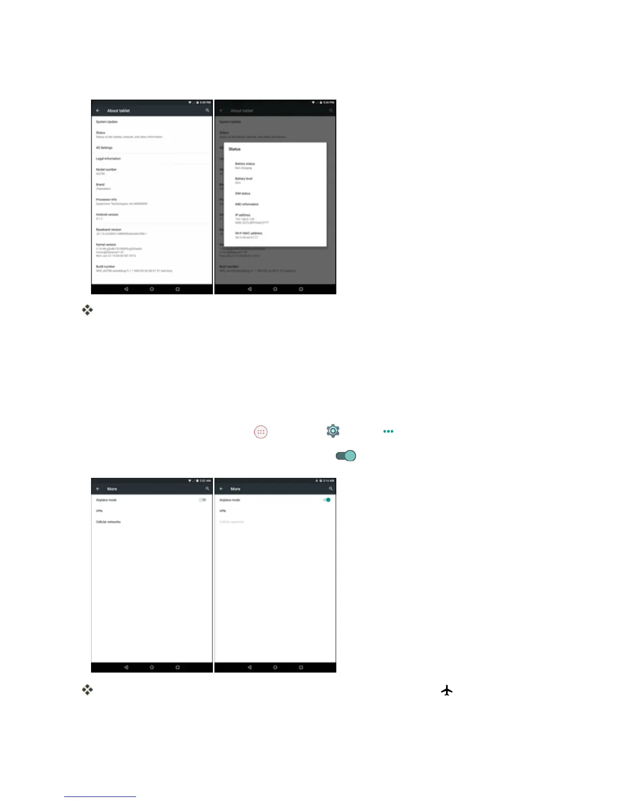 Yourtabletisnowinairplanemode.Youwillseetheairplanemodeicon inthestatusbar.