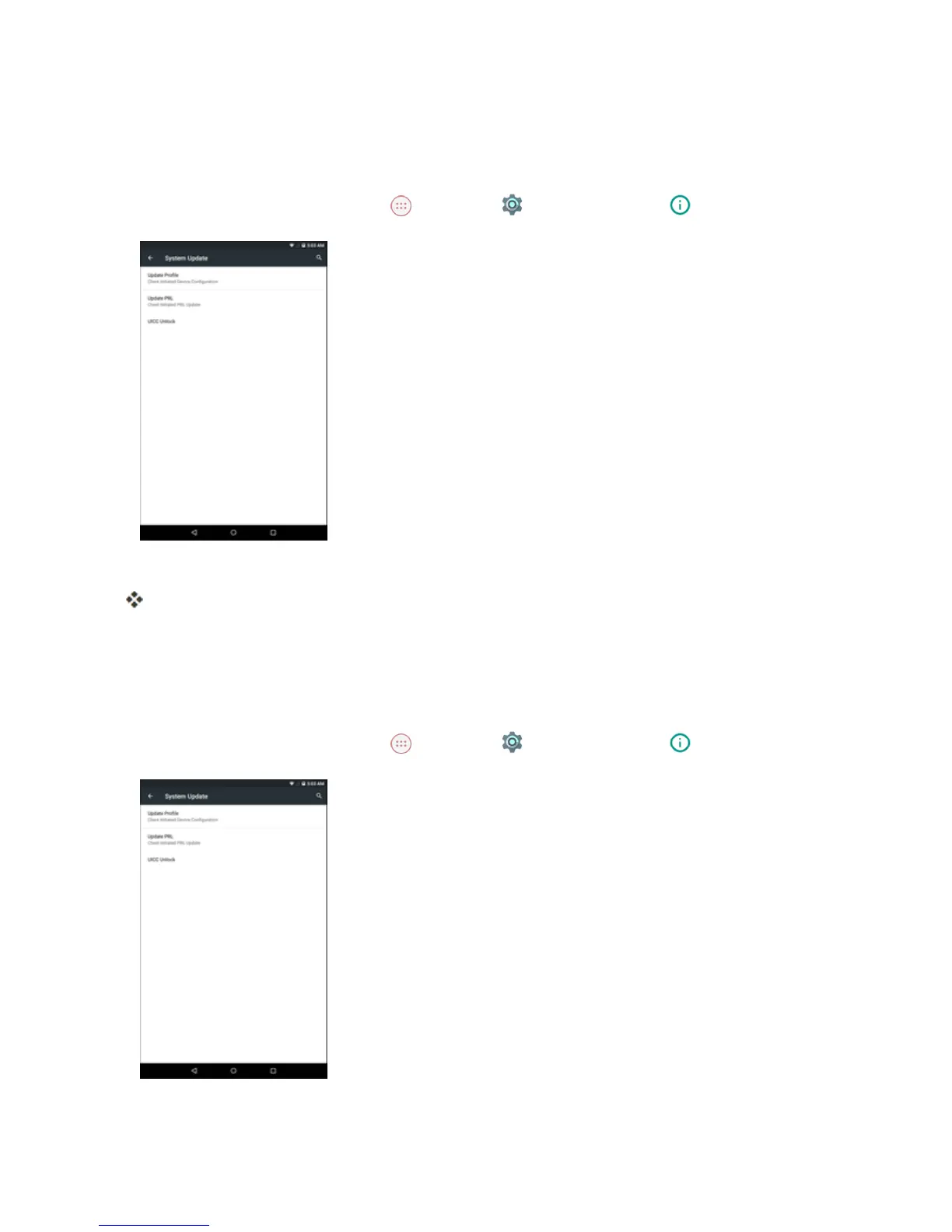 FromtheHomescreen,tapApps >Settings >System Update >Update PRL.