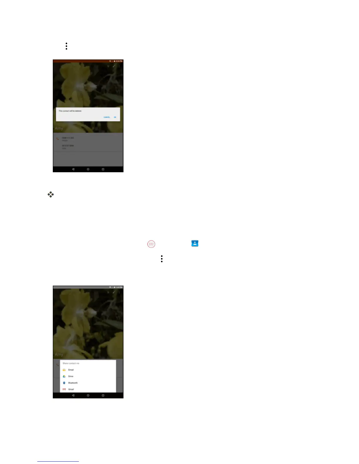 YoucanquicklysharecontactsusingBluetooth,Email,Gmail,orGoogleDrive.