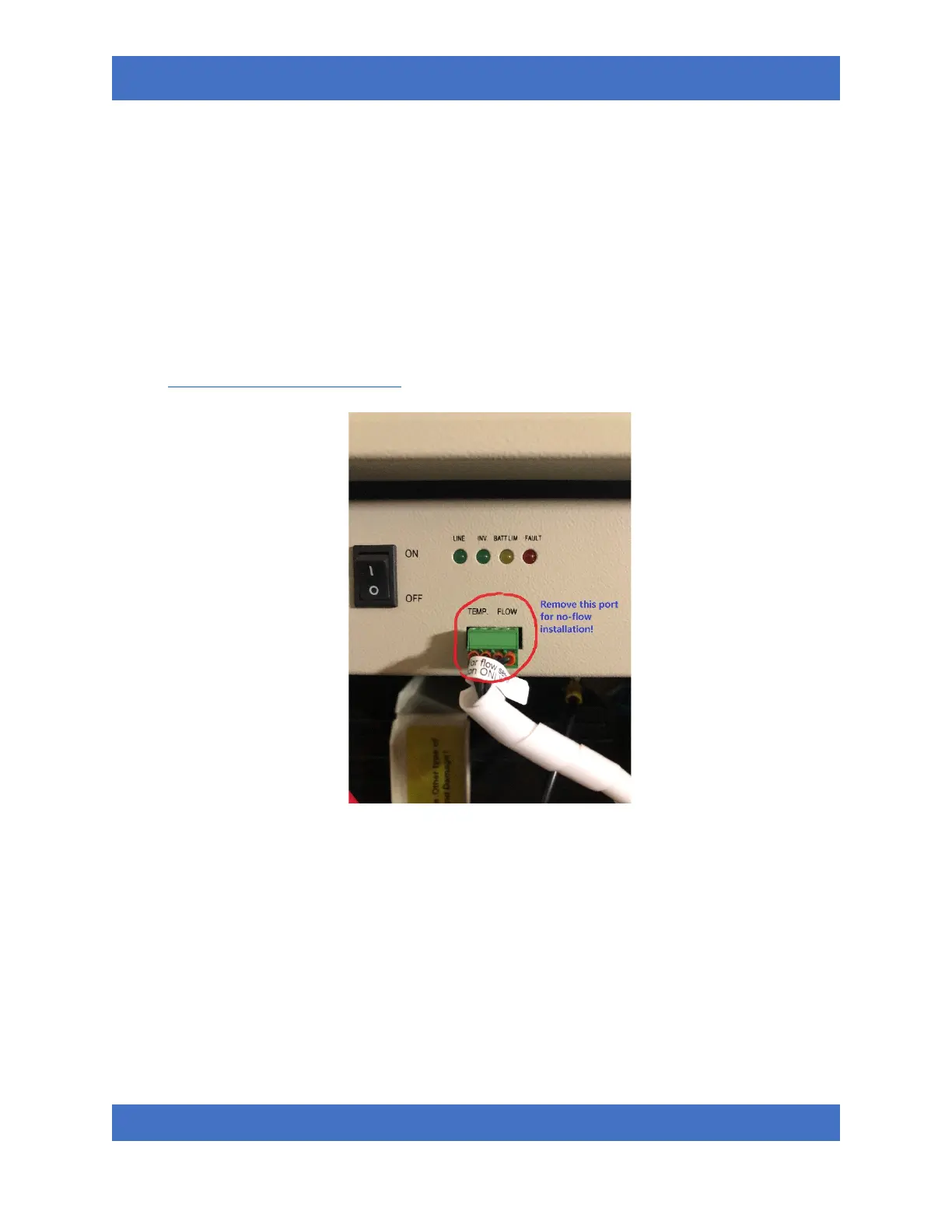 need of flow sensing function, you MUST unplug the “Temp.Flow” port as shown below in order for