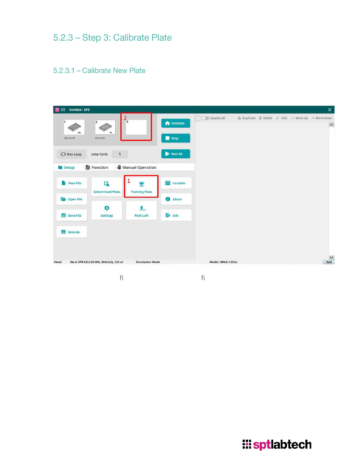 To calibrate new plate, click “Training Plate” from Setup tab, then select the empty