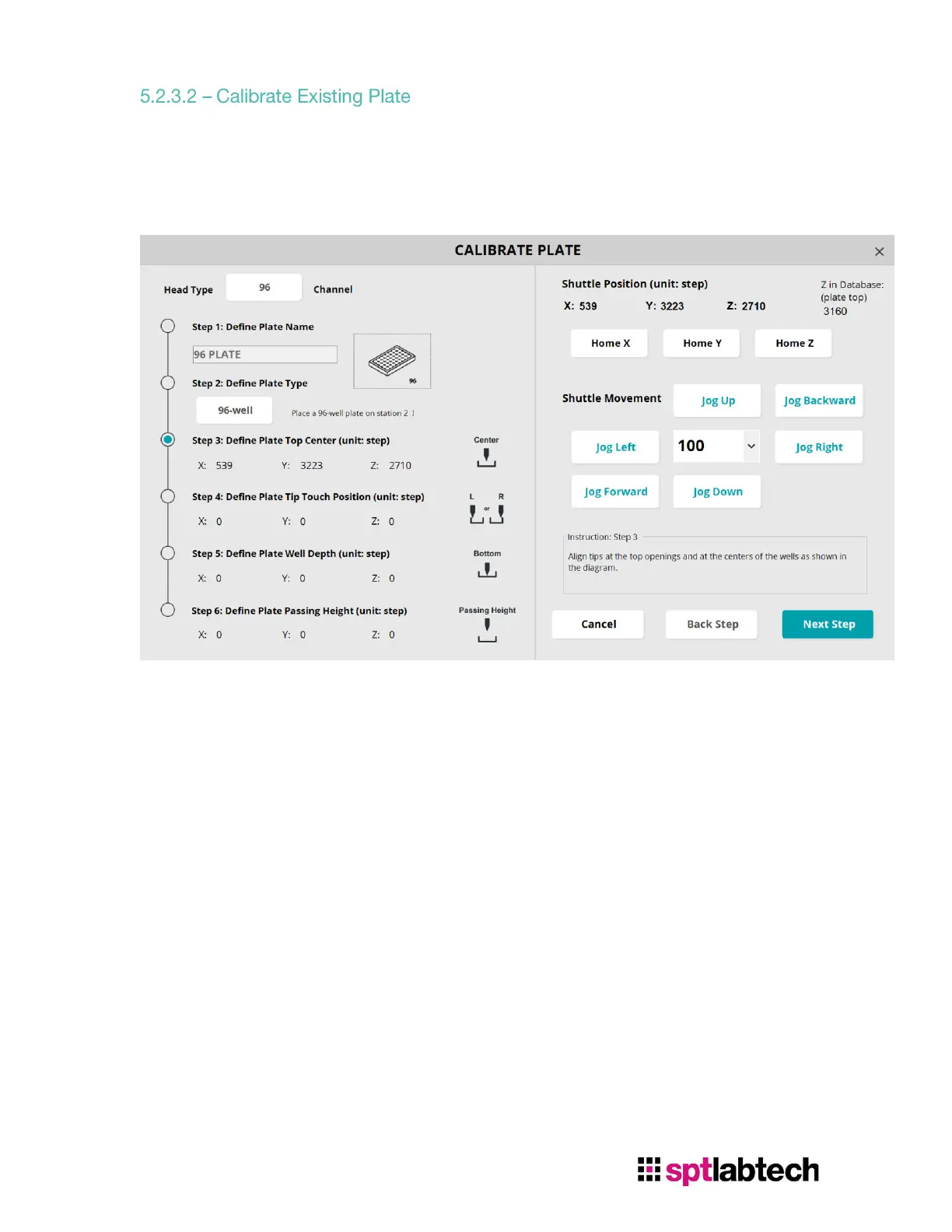 select the desired plate to enter Calibrate Plate menu. Follow the steps to calibrate