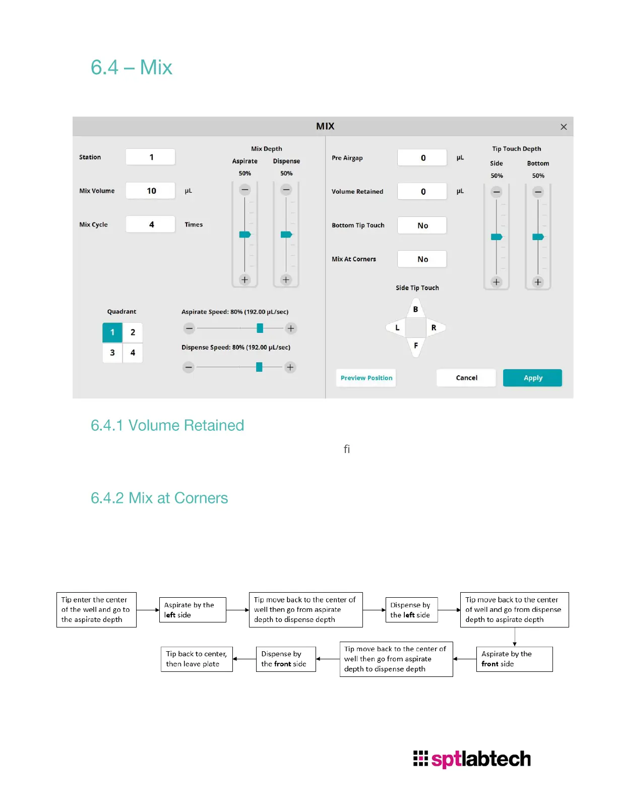 Volume retained is the volume will aspirate after nished mixing. This feature can be