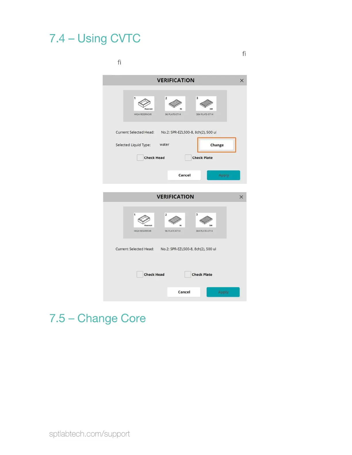 SPT Labtech Apricot S3 - 7.4 - Using CVTC; 7.5 - Change Core