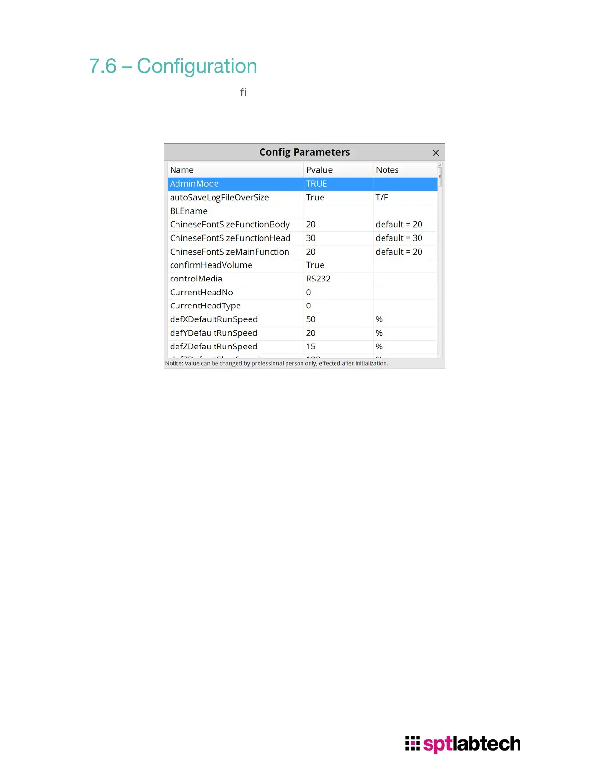 consult an SPT representative for any questions about the parameters. Changing