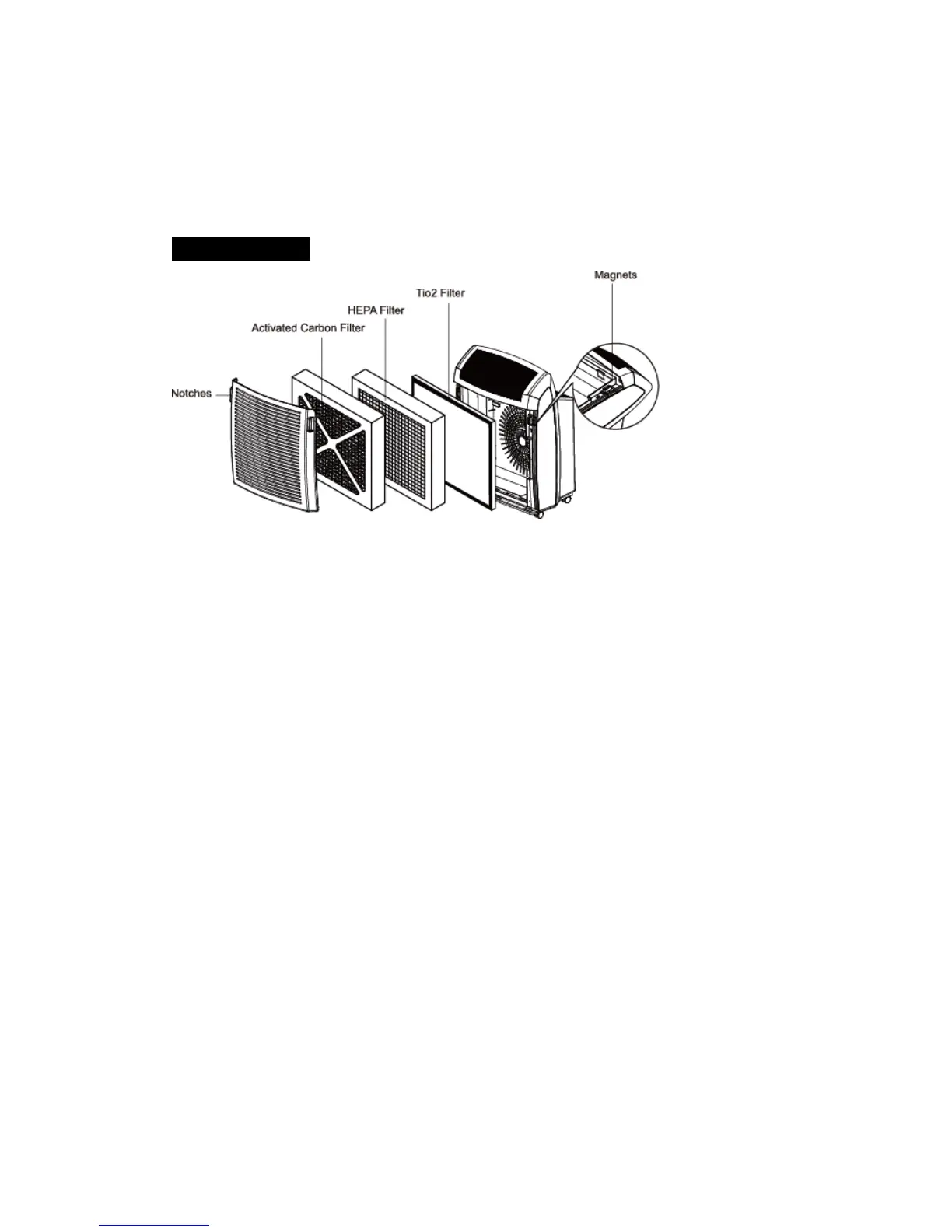3. Replace the old HEPA Filter (or Activated Carbon Filter) with a new one. Note: