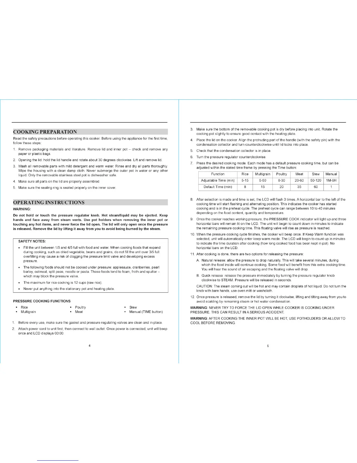 SPT EPC-11A - Cooking Preparation; Operating Instructions