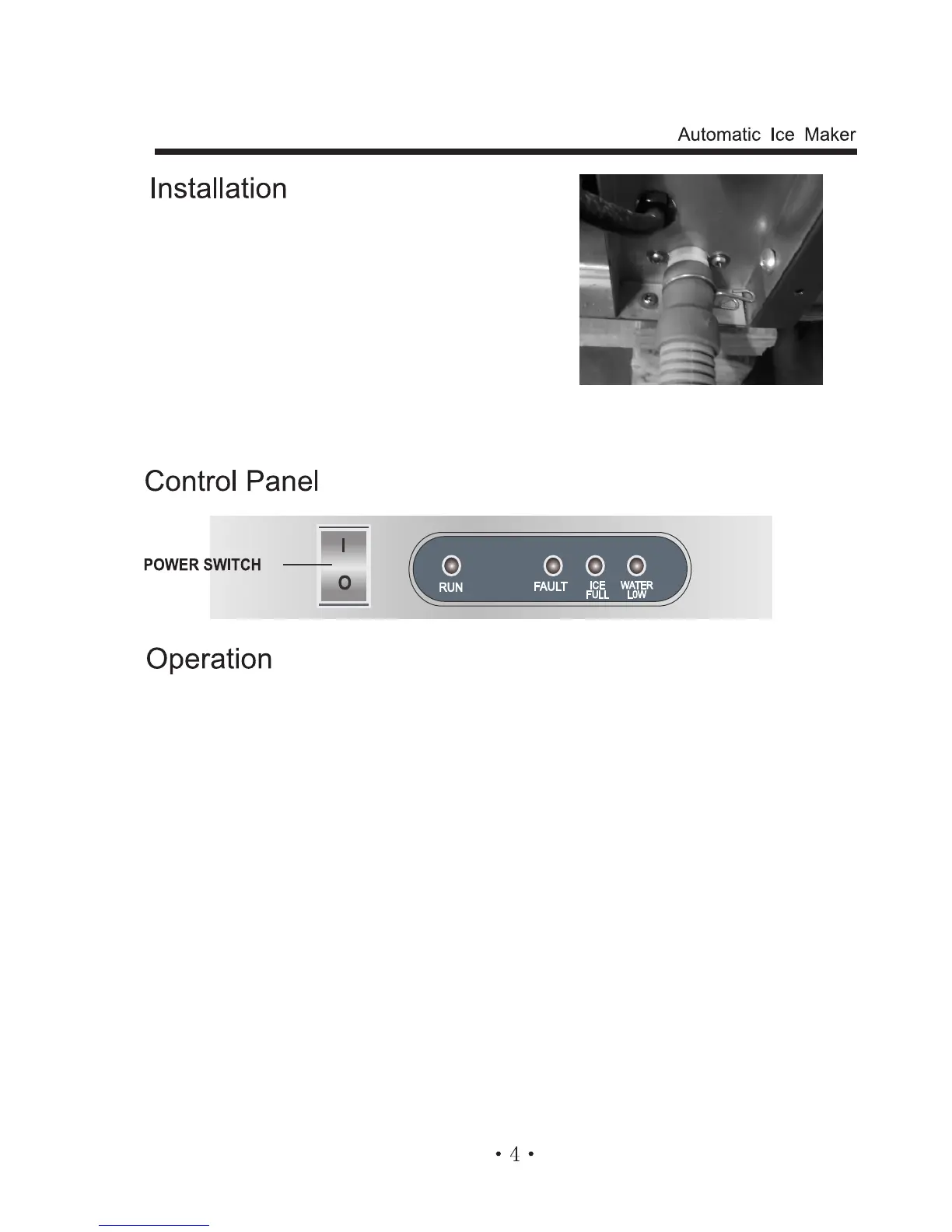 is suggested to discard the rst four batches of ice to ensure machine is