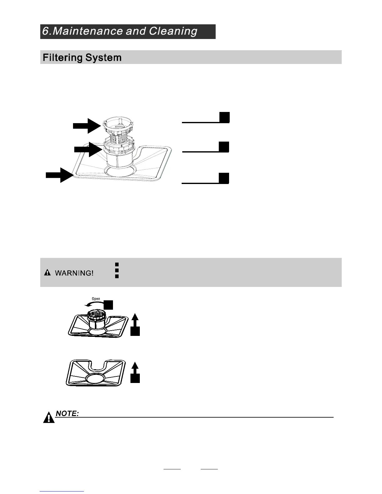 The filter prevent larger remnants of food or other obje cts from getting inside the pump.