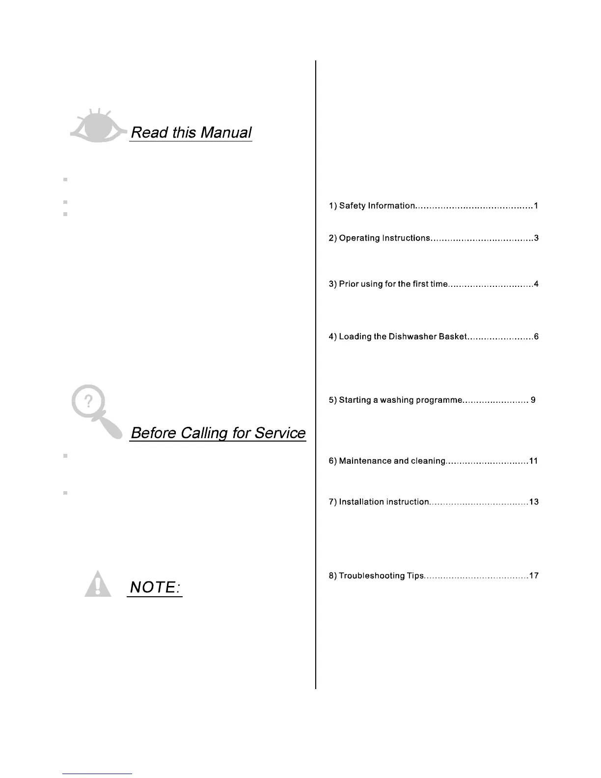 Before calling for service........................... .....17.