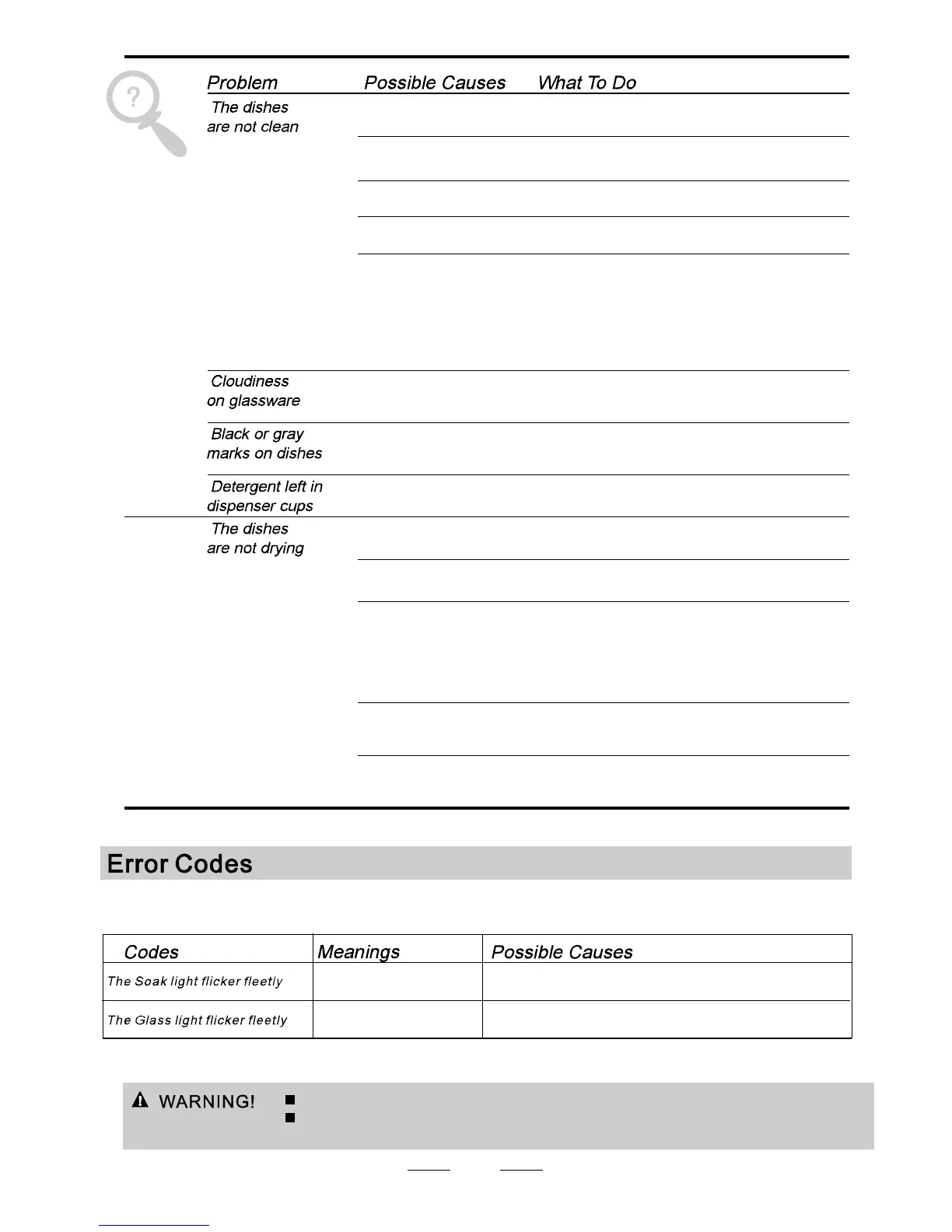 When some malfunctions come on, the appliance will display error codes to warn you: