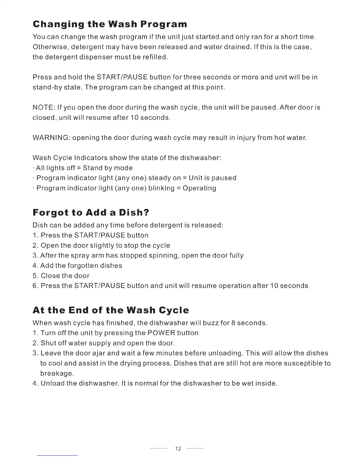 WARN NG opening the door during wash cycle may result in injury from hot water.