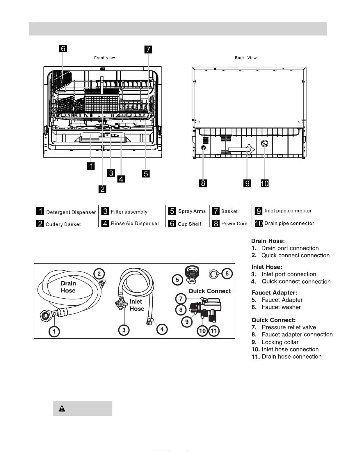 Your dishwasher comes equipped with a 'quick connect' assembly (includes inlet and drain hose). The