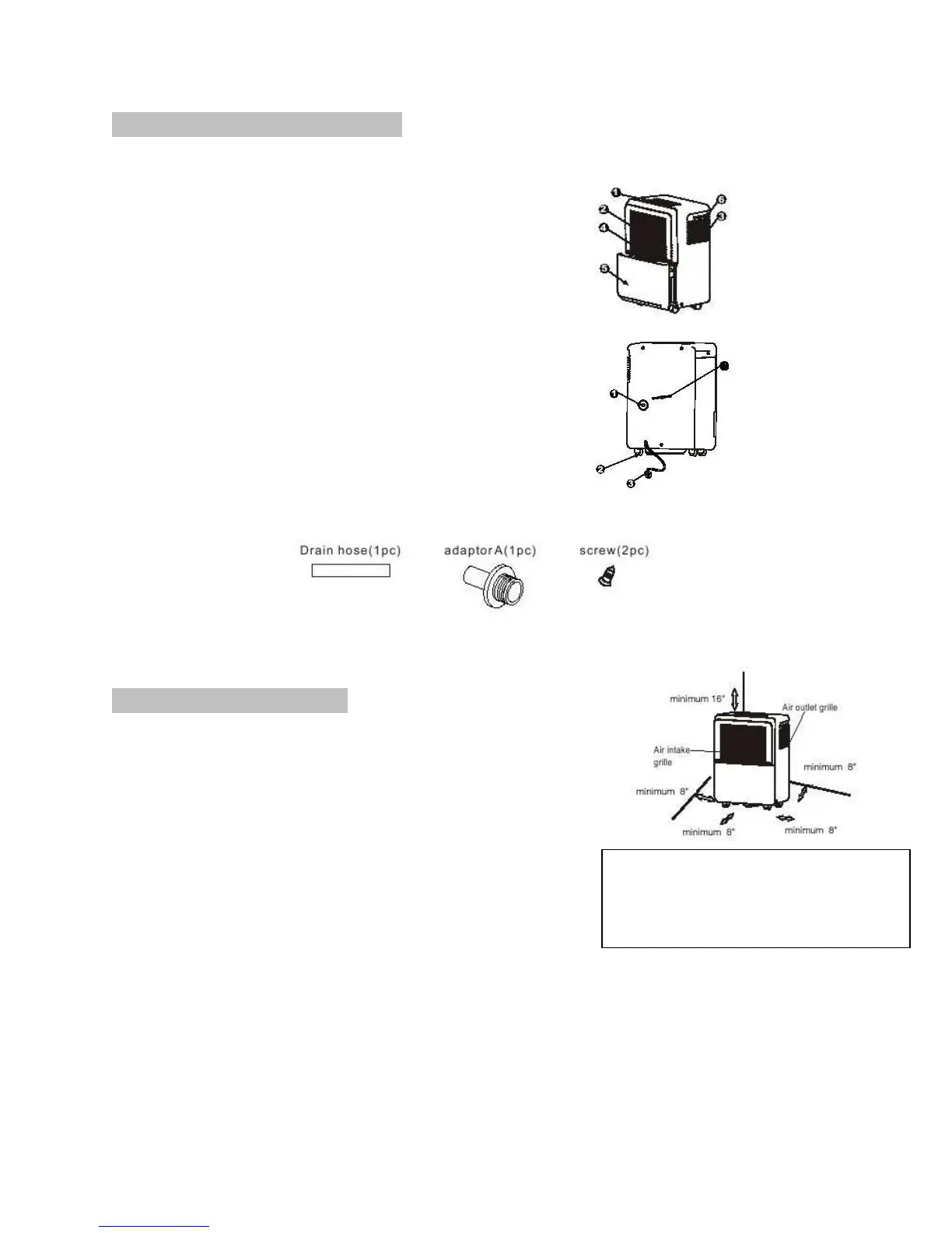 • Allow at least 8 inches of space around the unit and 16 inches above the unit.