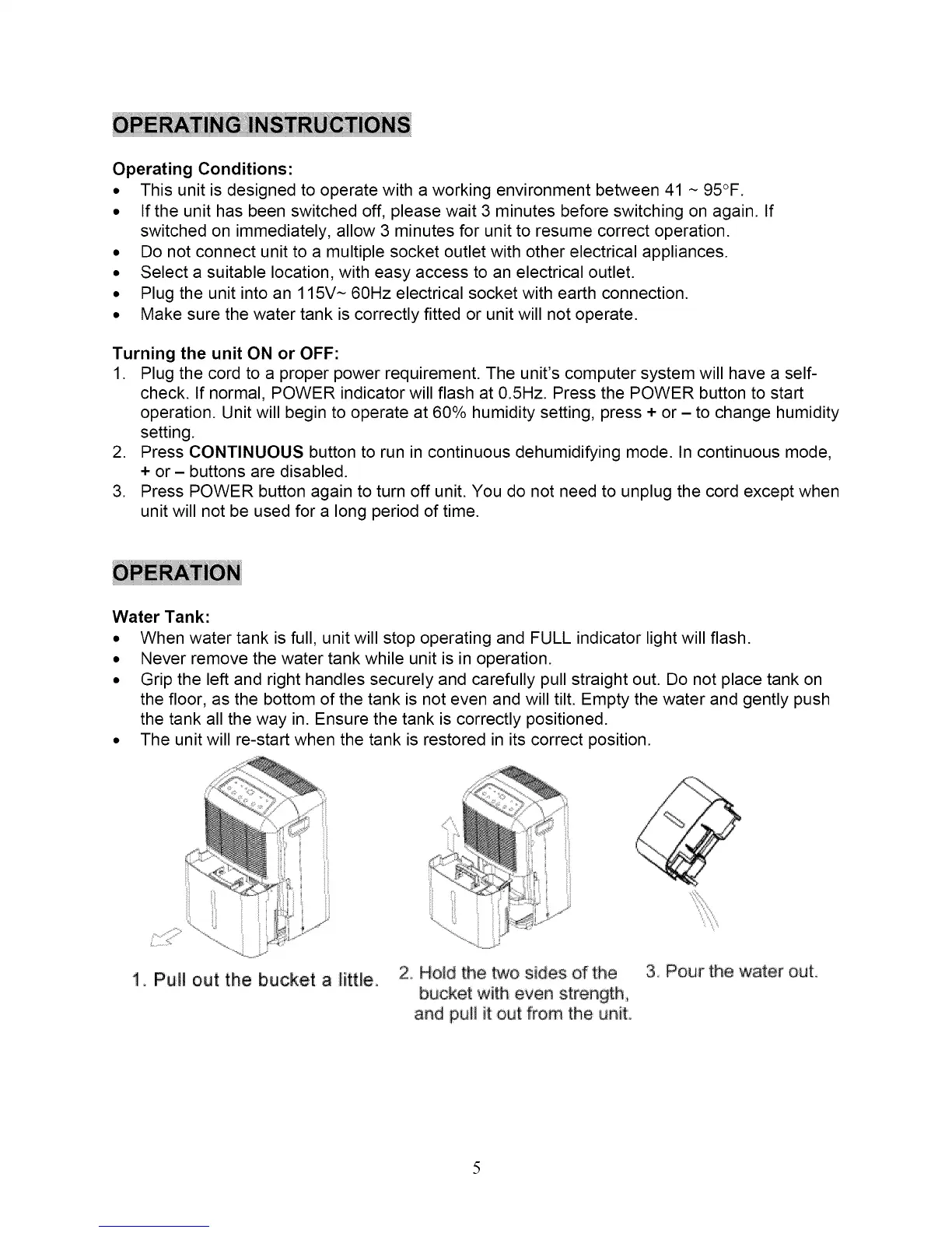 This unit is designed to operate with a working environment between 41 ~ 95°F.