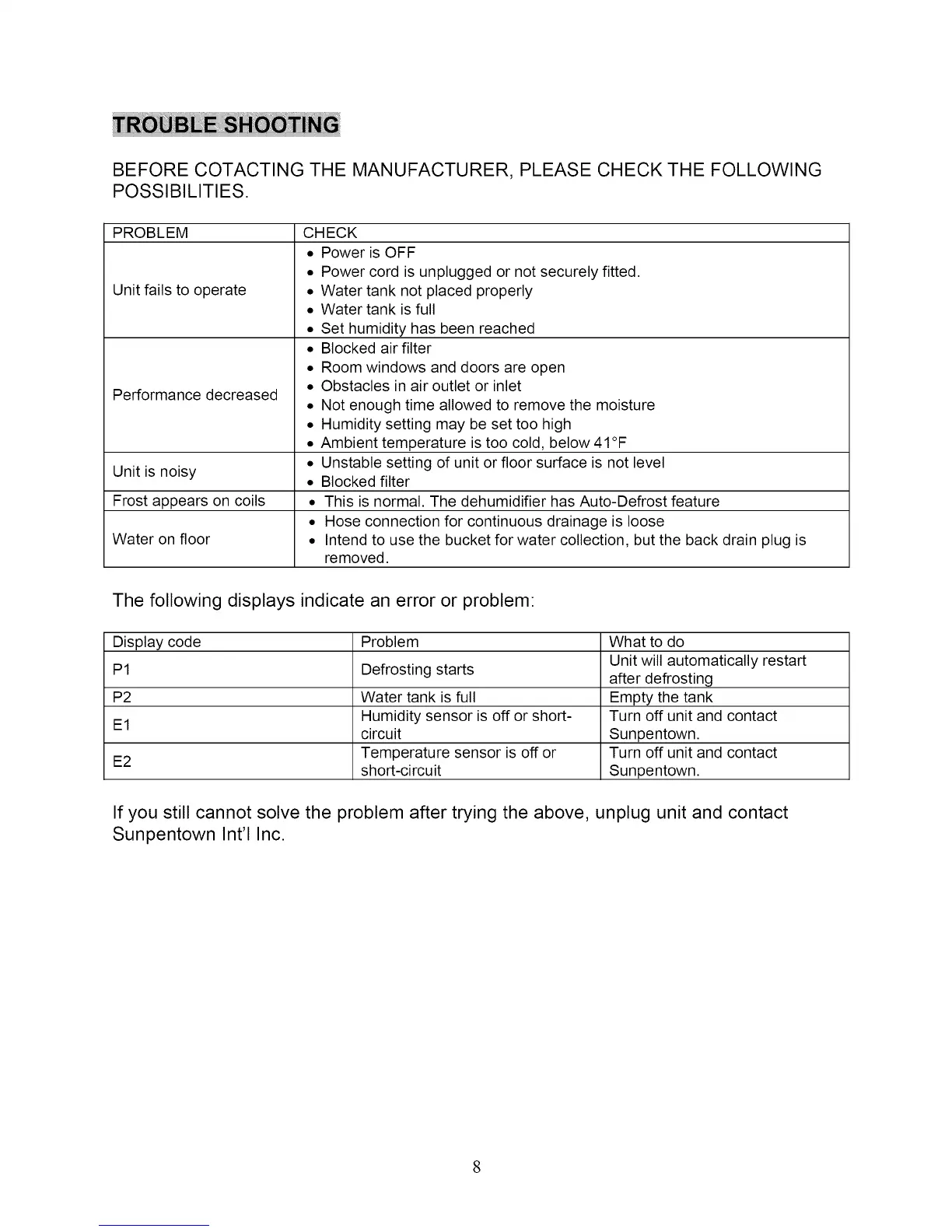 BEFORE COTACTING THE MANUFACTURER, PLEASE CHECK THE FOLLOWING