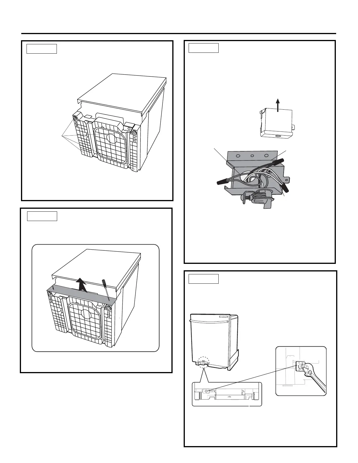 • Remove the 2 toekick screws. Lift off the piece