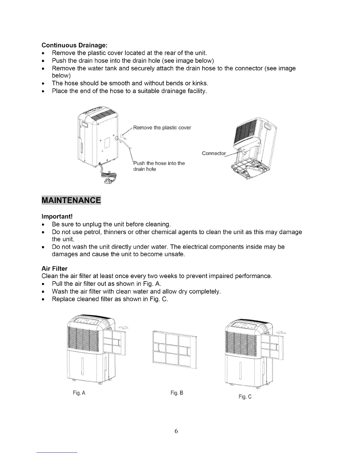 Clean the air filter at least once every two weeks to prevent impaired performance.