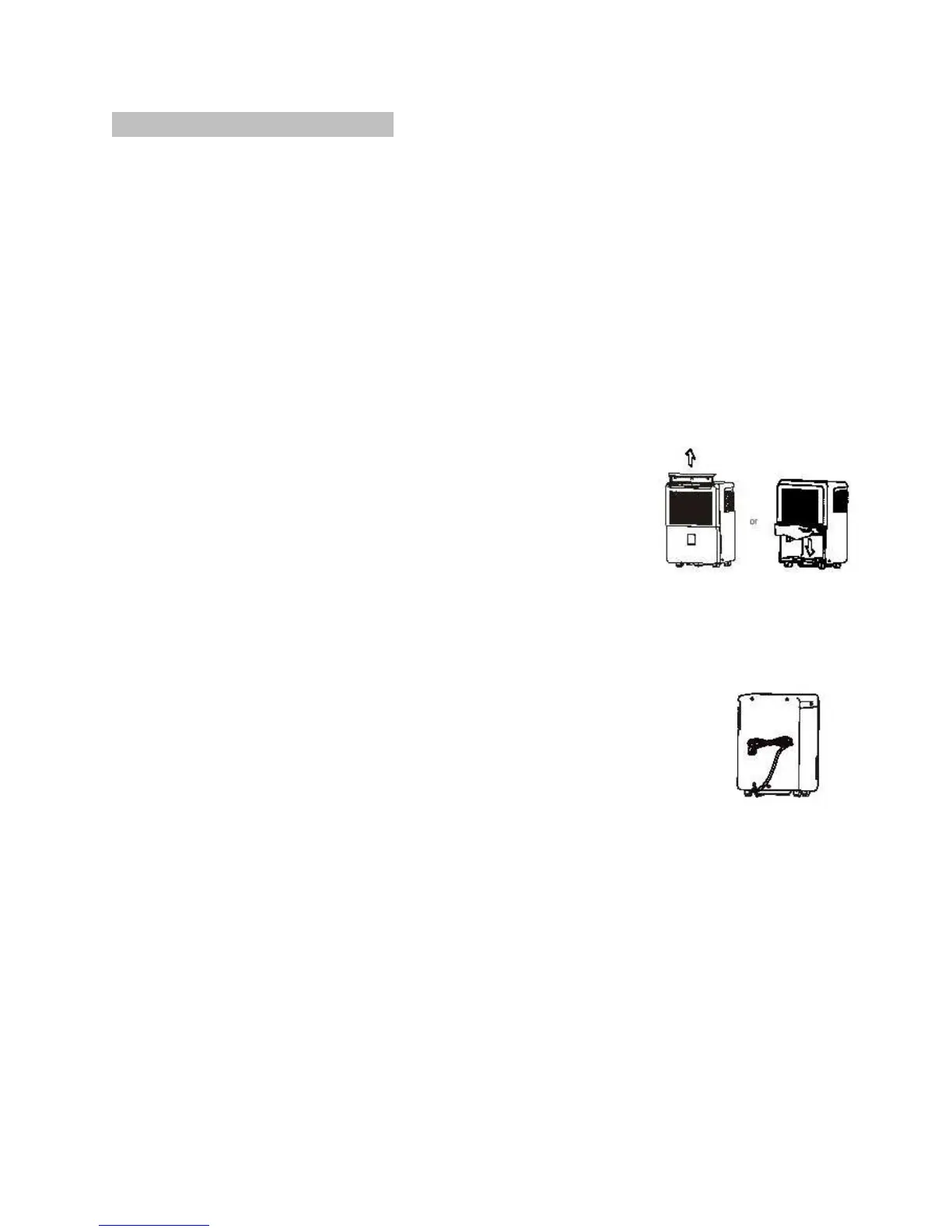 • After powering off and unplugging the unit, wait one day before emptying the bucket.