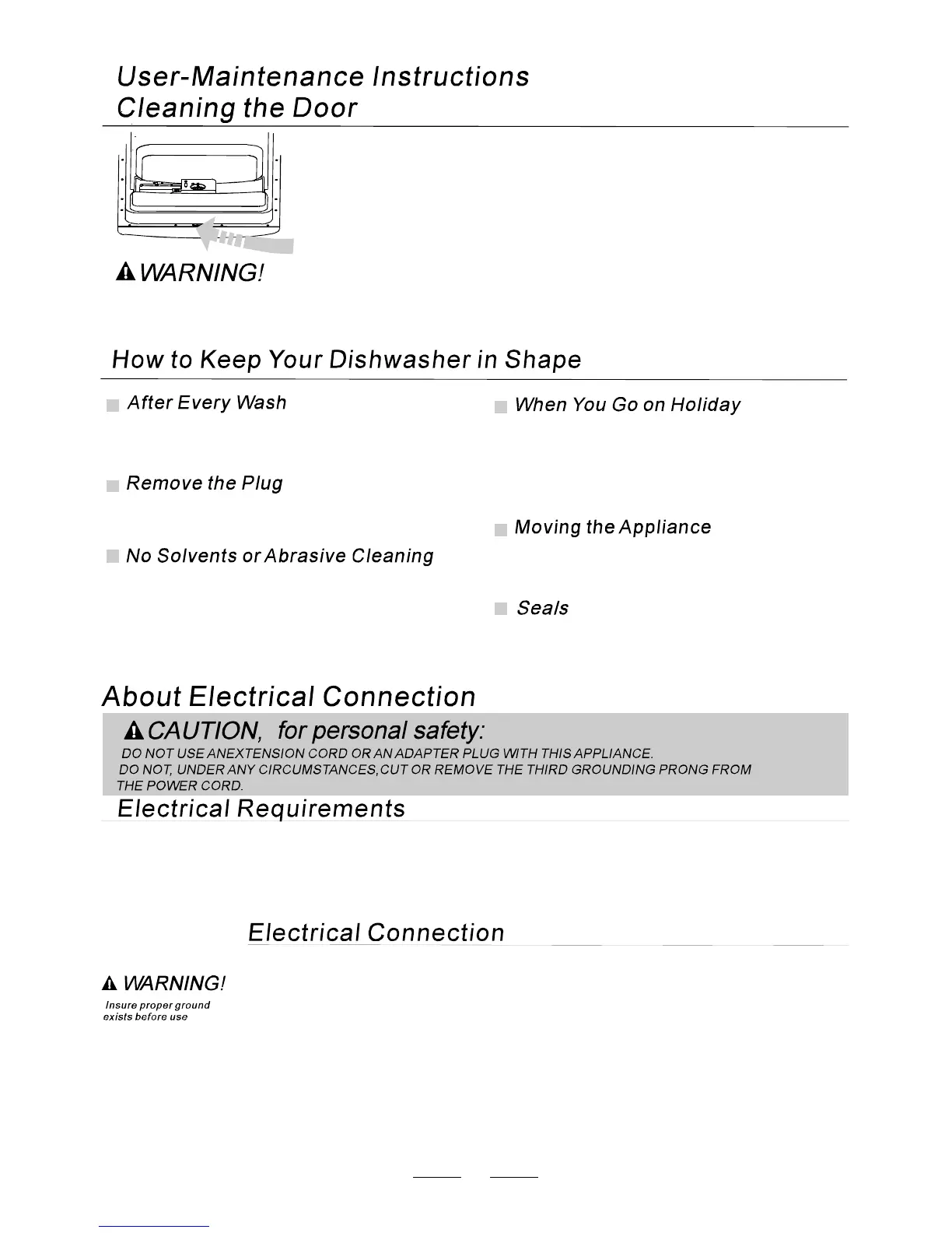 This dishwasher is designed for o peration o n an adequa tely wi re d indi vidual 110V, 60Hz.Use r equired fuse 15 am ps.