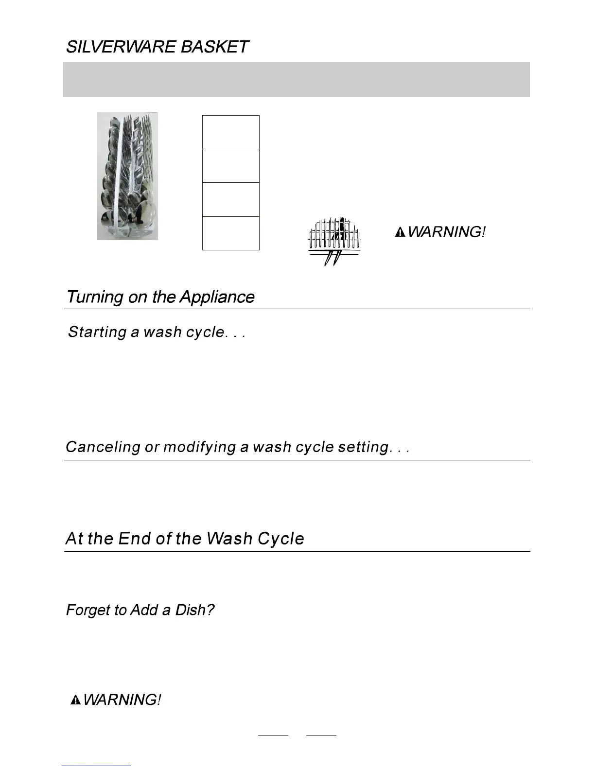 Silver ware should be placed i n t he silverw are basket with handles a t the b ottom : I f the rack h as s ide bask ets,