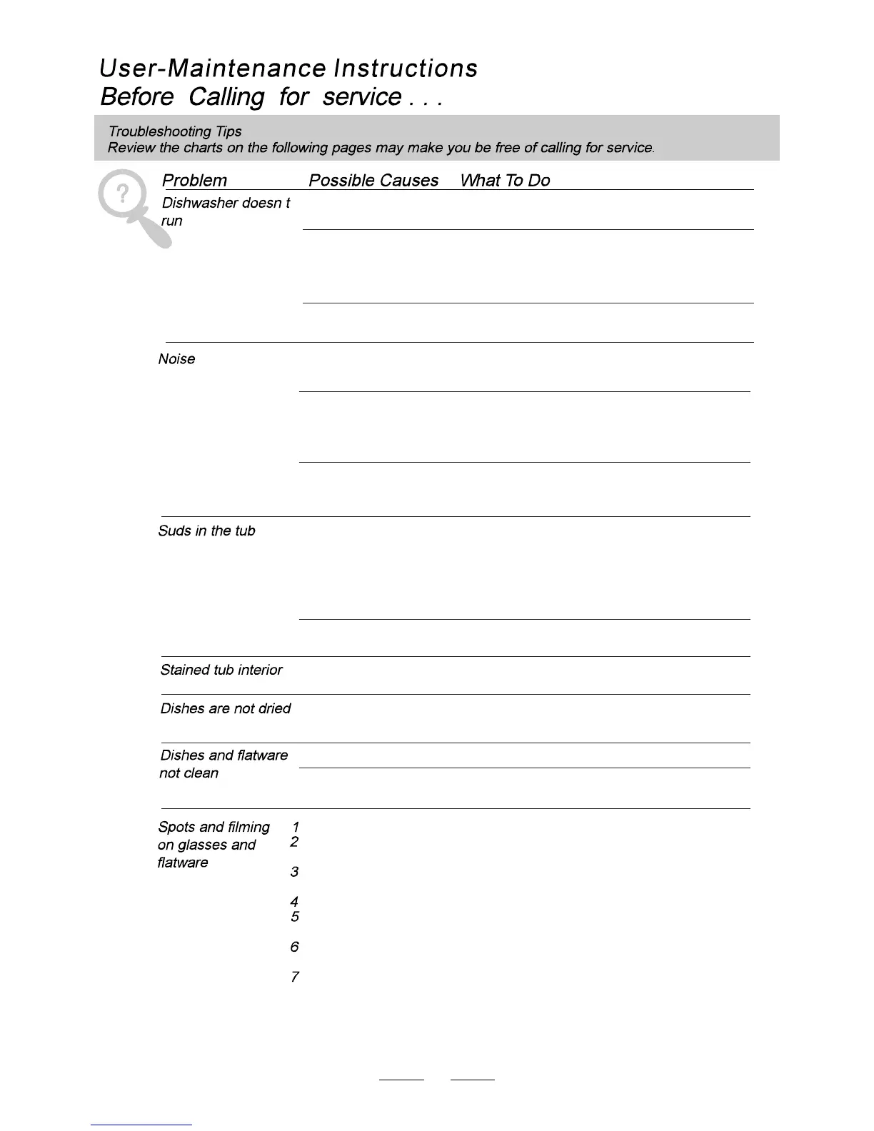 Improper rack loading Make sure that the action of the detergent dispenser and