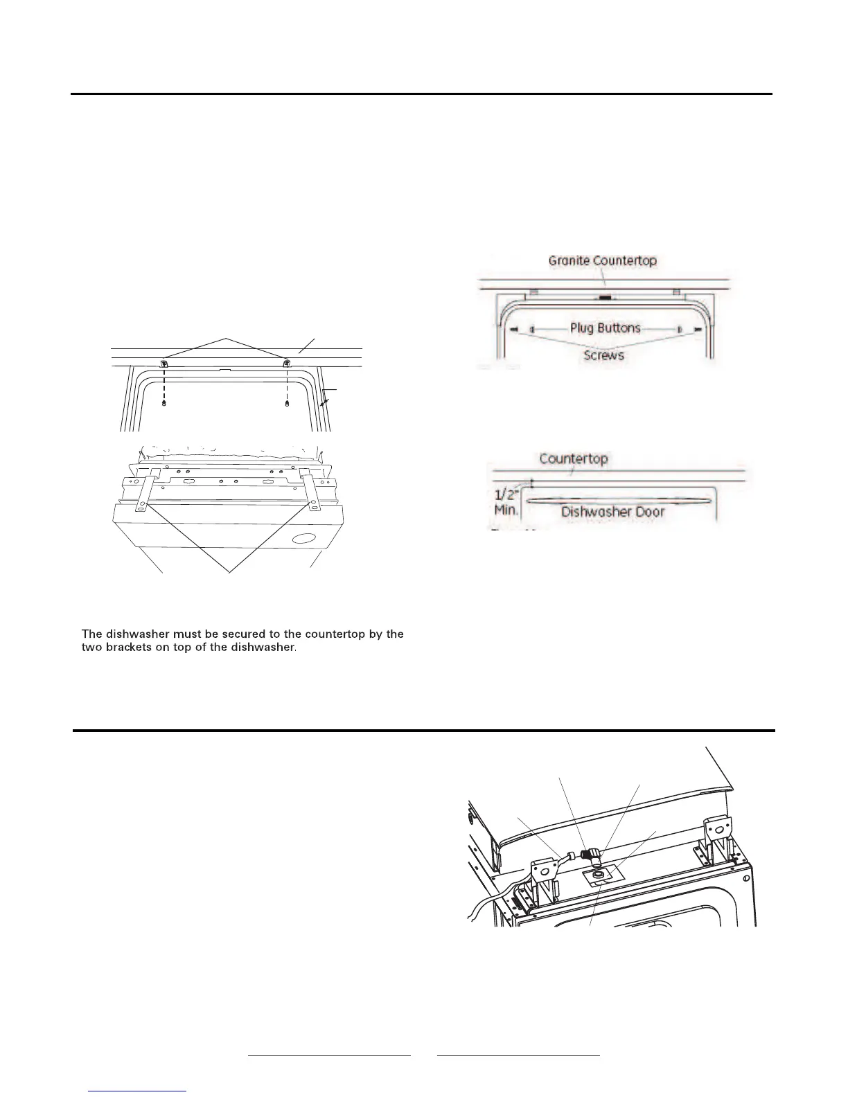 The dishwasher must be secured to the countertop or
