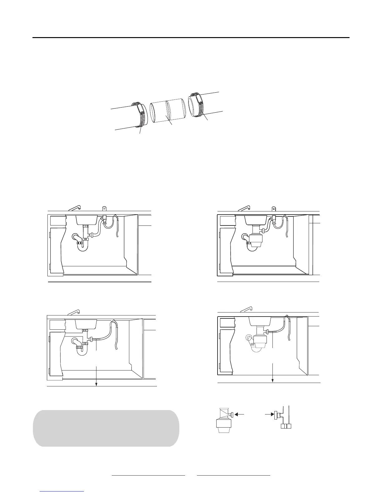 * Connect drain line to air gap, waste tee or disposer using either previously determined method.