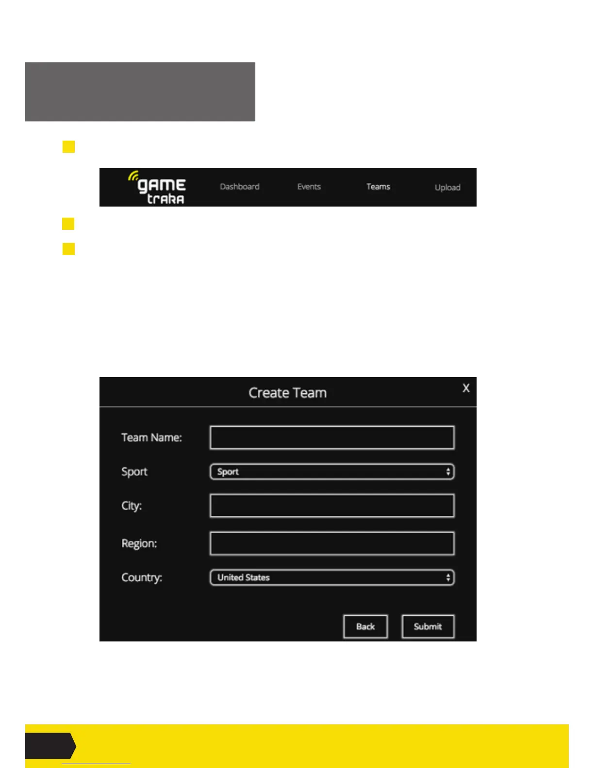 2 Navigate to Create Team. Fill out the information and Submit.
