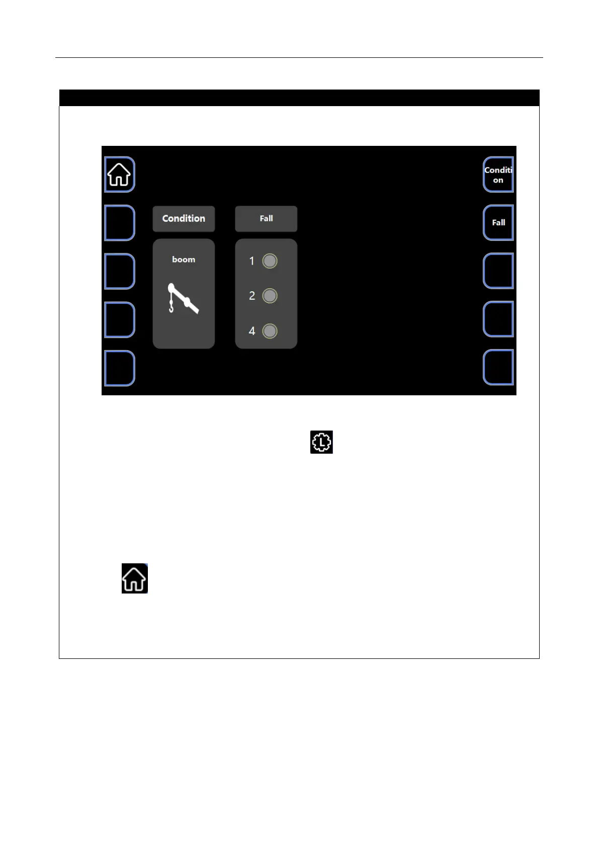 enters the working condition selection (boom, fly jib, searcher hook) and fall selection interface, and