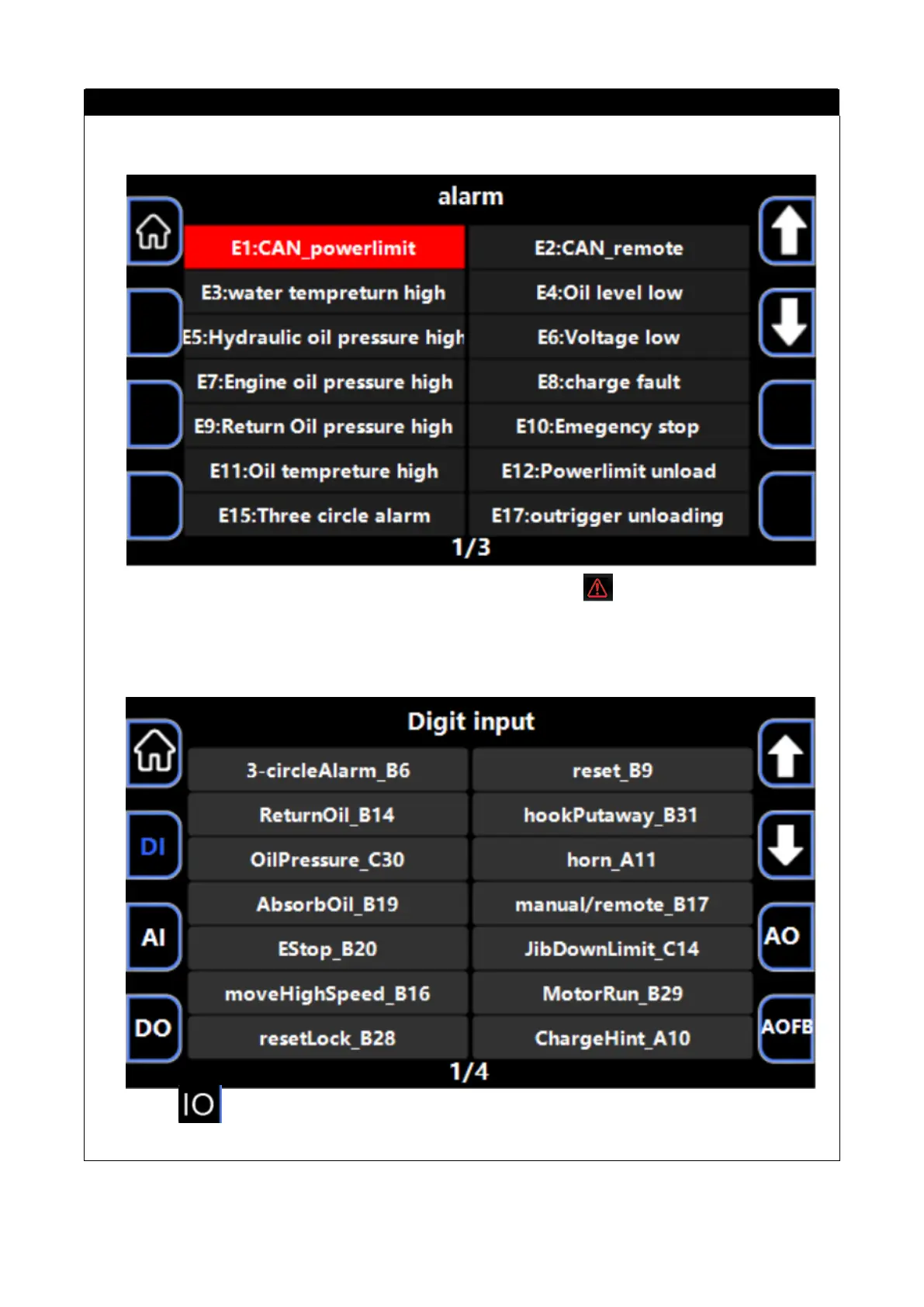 ●Press the button to enter the I O(DI/DO/AI/AO/CAN/AOFB) monitoring screen, and you can