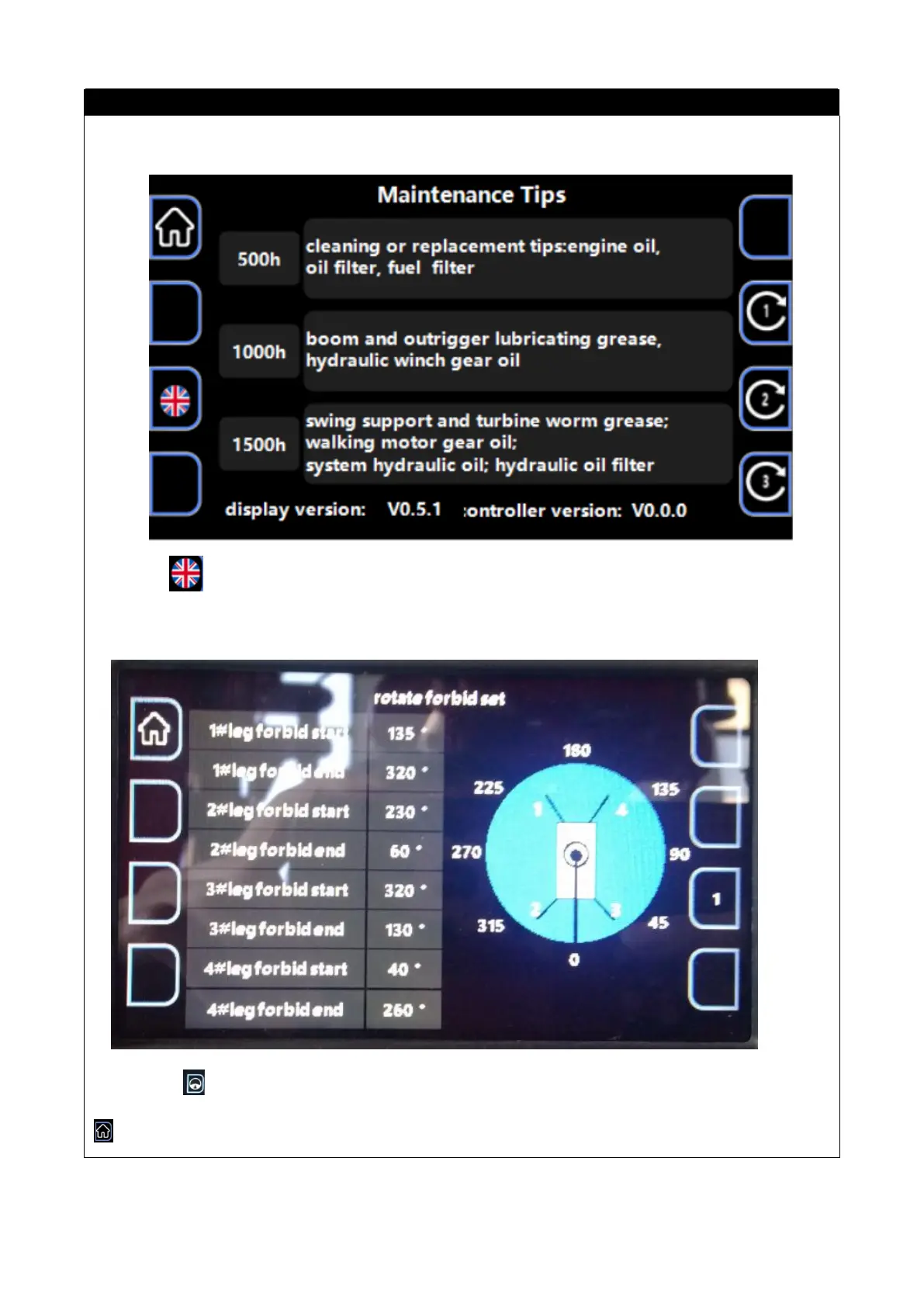 Press the button to enter the rotation restricted area interface of the outrigger partitionPress the
