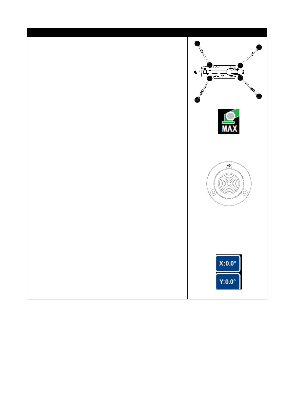 X and Y levelness values of the display screen. Lifting mode≥2.5°