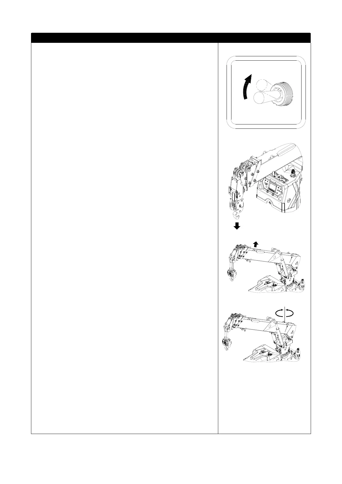 6. Slowly push forward the boom up-and-down handle (No. 2) to