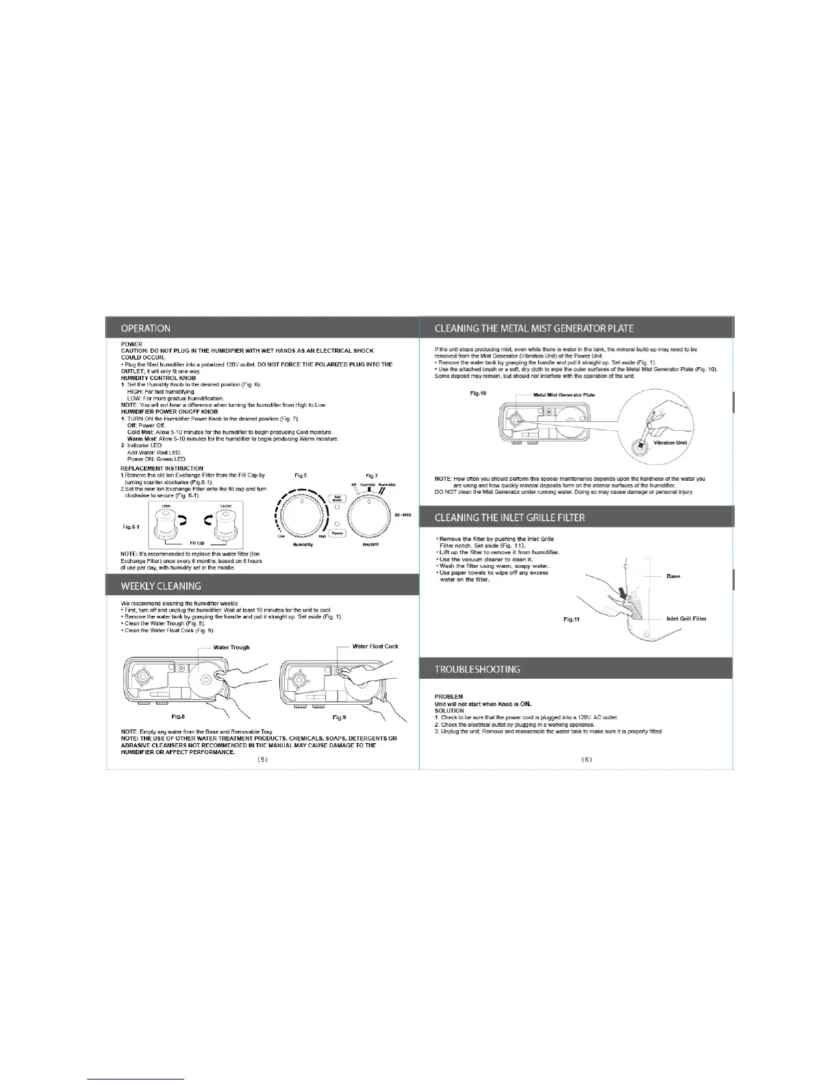 SPT SU-4010 - Operation Controls; Cleaning, Maintenance, and Troubleshooting; Cleaning the Mist Generator Plate; Cleaning the Inlet Grille Filter